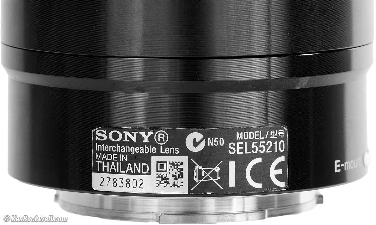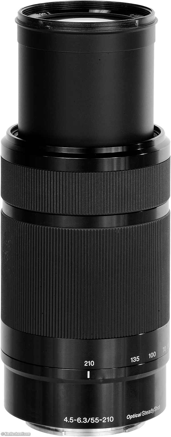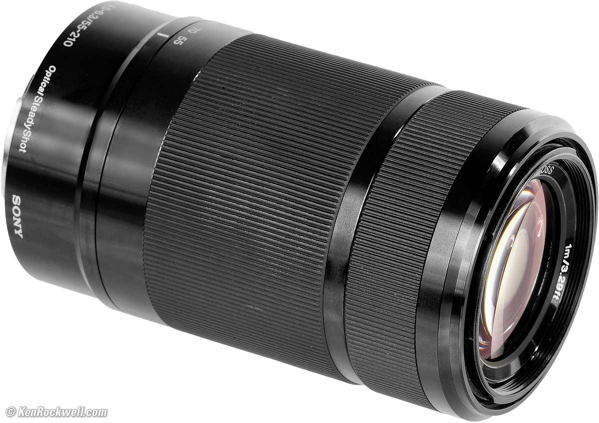 Sony 55-210mm OSSStabilized E-Mount APS-C (2011-)Sony: A9 III A1 II A1 A9 II A7R V A7R IV A7 V A7 IV A7 III A7S III A7CR A7C II A7c FX3 FX2 ZV-E1 A6700 A6600 A6400 ZV-E10 II ZV-E10 ZV-1 II RX1R III RX10/4 RX100/7 Flash Lenses Sony E 55-210mm f/4.5-6.3 OSS (APS-C, 49mm filters, 11.8 oz./335g, 3.3'/1m close focus, $298 new or about $100 used if you know How to Win at eBay). bigger. I'd get mine at Adorama, at Amazon, at B&H, at Crutchfield or used at eBay. It also comes in silver at Adorama, at Amazon, at B&H, at Crutchfield or used at eBay. This all-content, junk-free website's biggest source of support is when you use those or any of these links when you get anything, regardless of the country in which you live. Thanks for helping me help you! Ken.