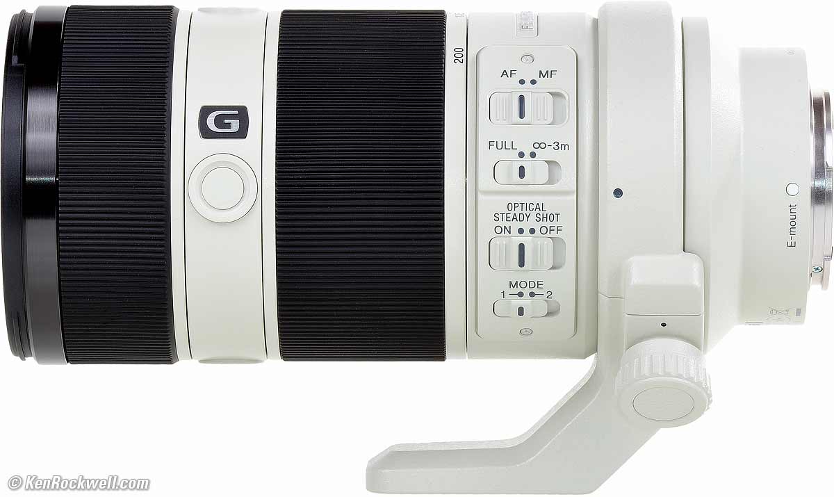NameSony calls this the FE 70-200mm f/4 G OSS (SEL70200G) FE: Full-frame coverage, E-mount. G: Meaningless other than meaning that the lens is high-priced. OSS: "Optical Steady Shot," meaning the lens has internal image stabilization. SEL70200G: Sony's internal product number.
