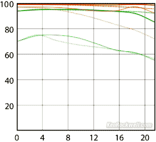 SharpnessAs I showed at the top, It's flawlessly sharp and contrasty from corner-to-corner at every aperture. Look at the camera-original © file at 100% on your computer and you will see that everything is super-sharp from corner-to-corner. This is the most difficult test of a lens' sharpness: a detailed shot wide-open with everything out at infinity. Sony confirms with its MTF curve below that it's as good and possibly a hair sharper that the exotic 85/1.4 GM: