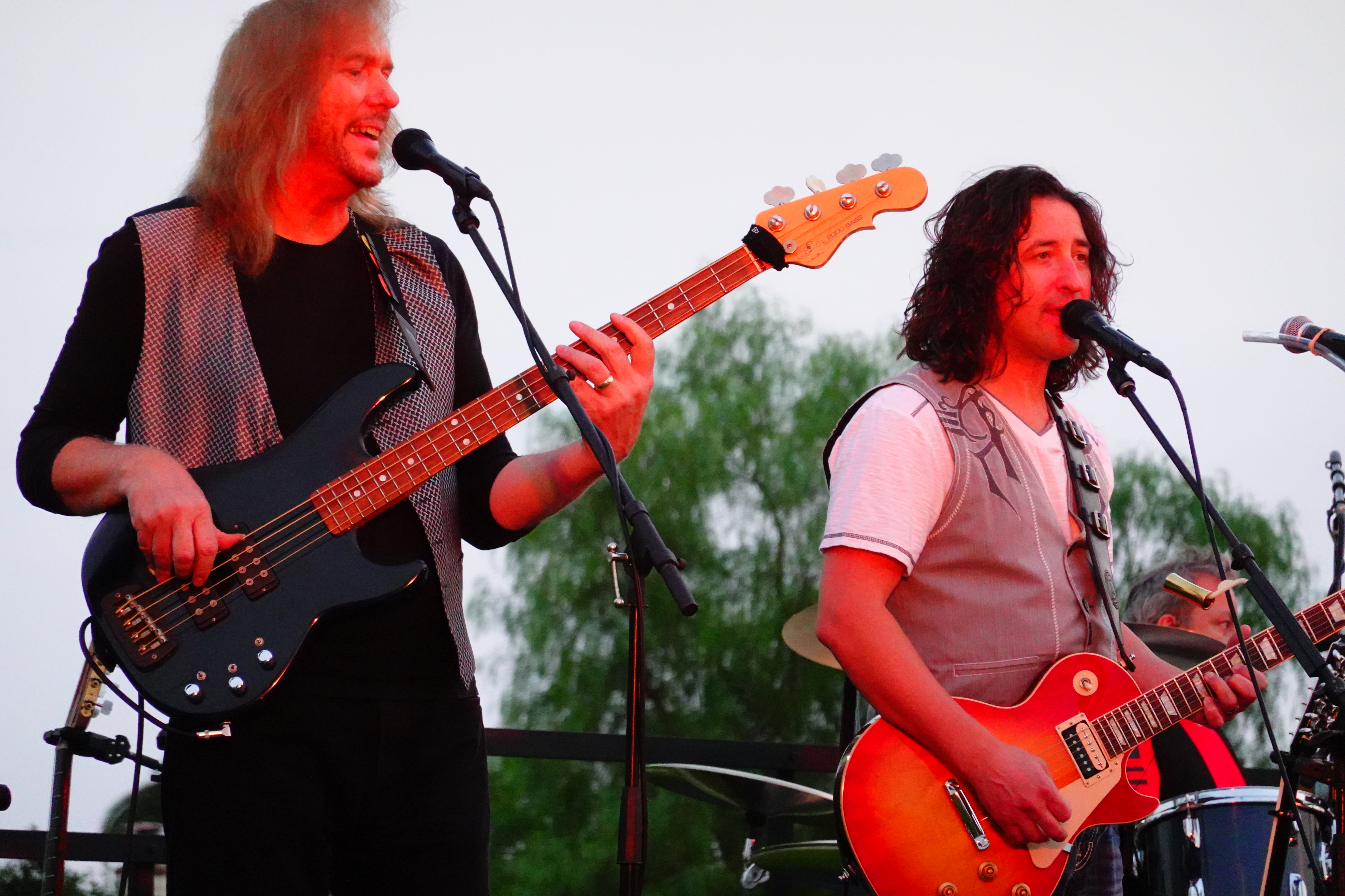 The Eagles in concert, 10 August 2018. Sony RX100 Mk VI at 200mm equivalent (72mm actual), wide-open at f/4.5 at 1/200 at Auto ISO 3,200, exactly as-shot. bigger or camera-original © file. Stage lighting colored their faces red.