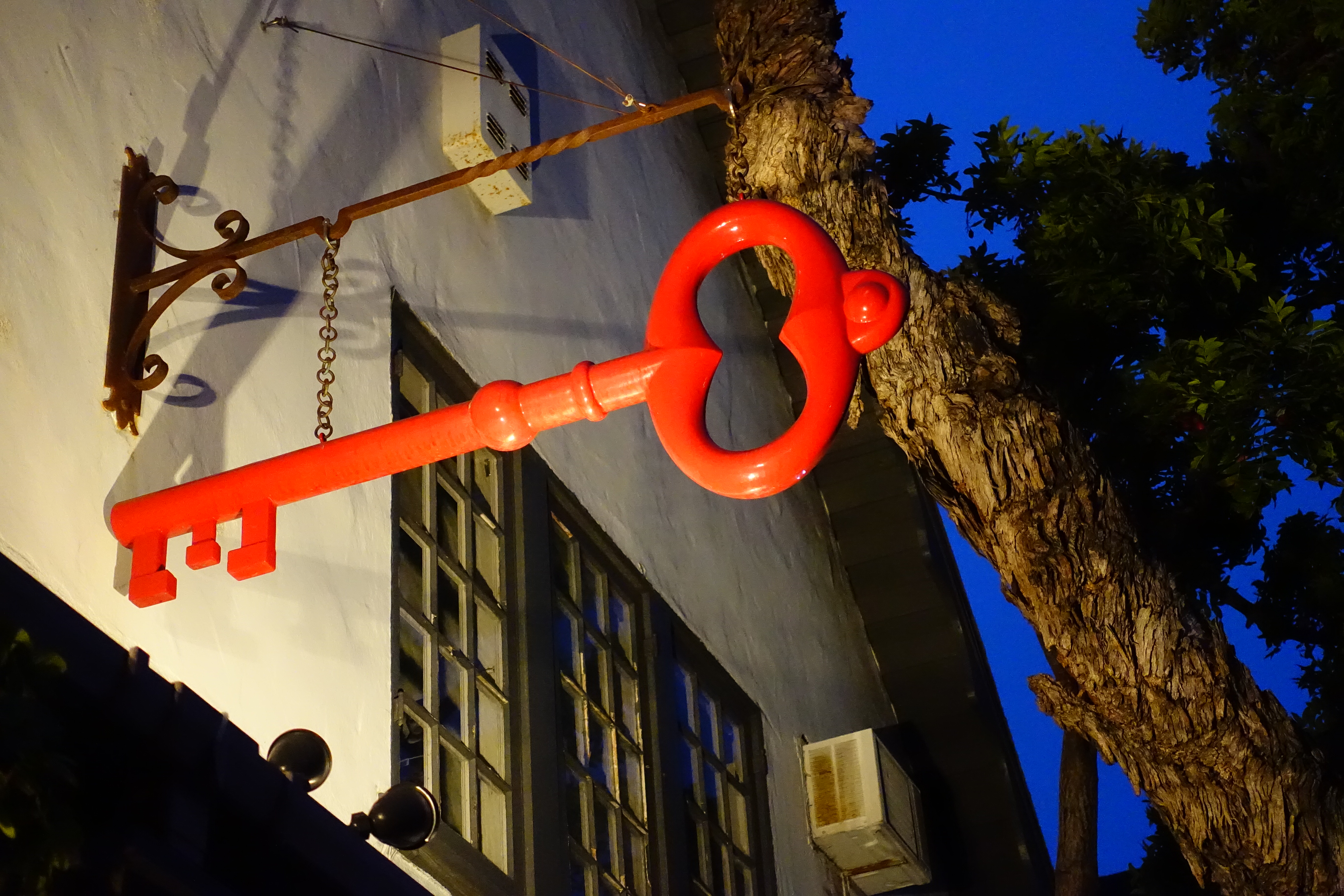 Red Key outside Five Crowns. (Sony RX100 Mk III at 25.6mm at f/2.8 at 1/80 hand-held at Auto ISO 4,000, no flash, Perfectly Clear V2.) bigger or camera-original © file.