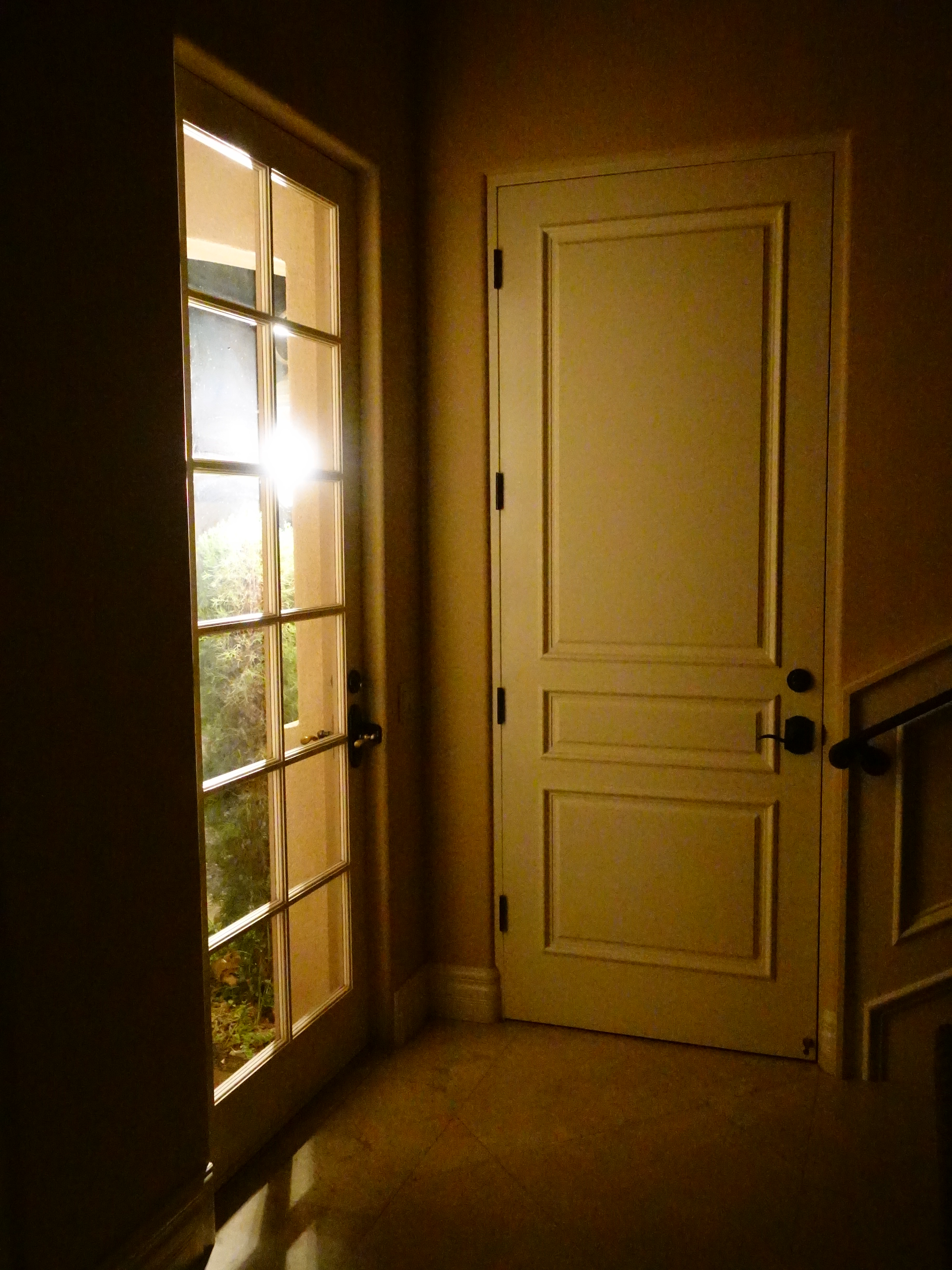 ISO 12,800Door at night, 13 November 2016. Sony RX100 Mk V at 10.9mm (30mm eq.), f/2.5 at 1/30 at Auto ISO 12,800. bigger or camera-original file to explore on your computer.