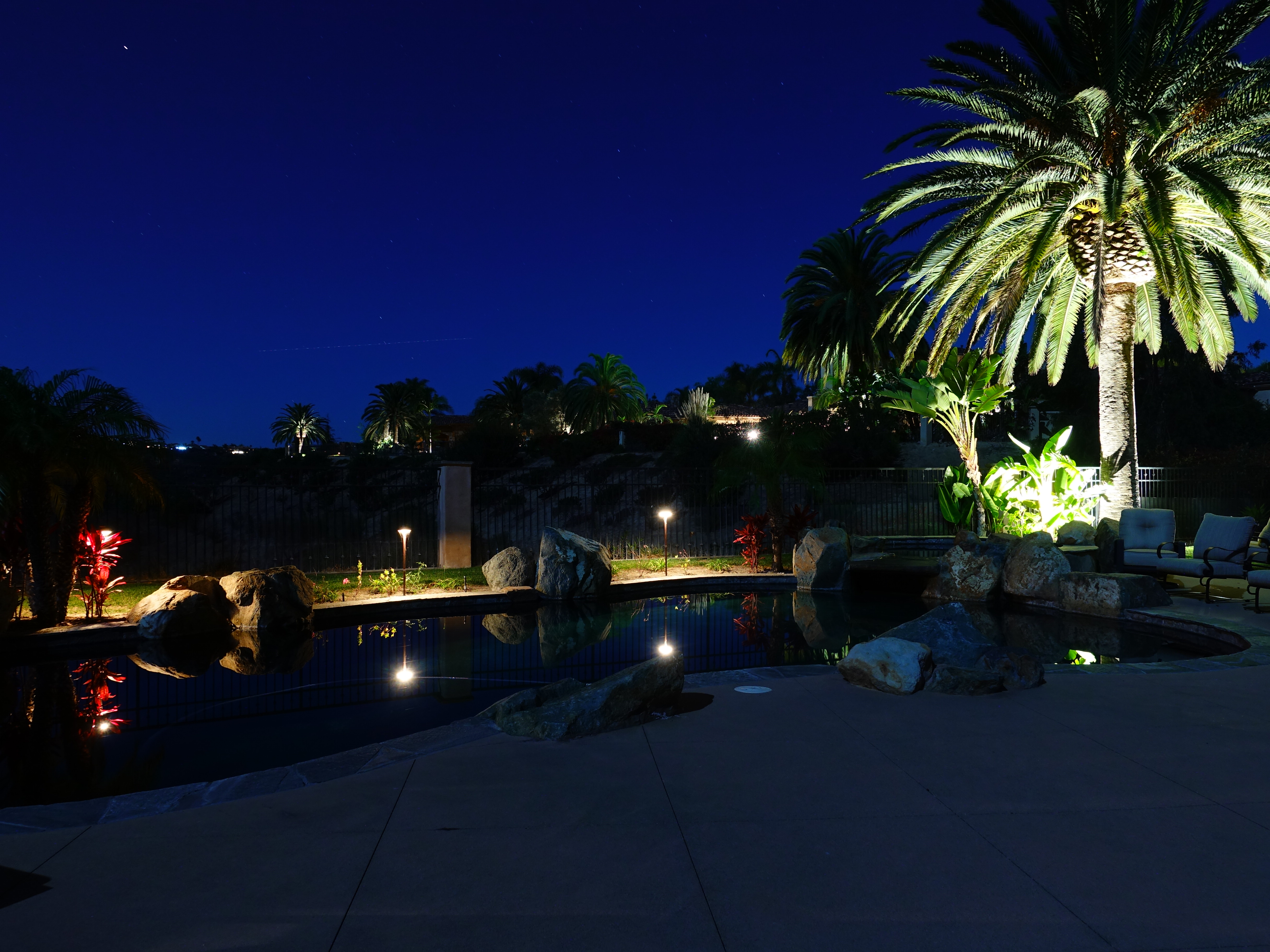 Pool by full moonlight, 13 November 2016. Sony RX100 Mk V at 8.8mm (24mm eq.), f/4 at 30 seconds at ISO 125. bigger or camera-original file to explore on your computer. IntroductionTop Sample Image Files Intro Specs USA Version Performance Compared