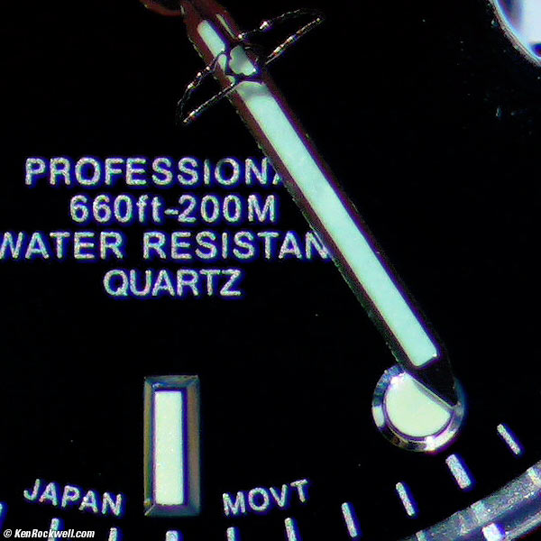 Macro performance top Macro is reasonable. Here's what you'll get on full-frame: Genuine Rolex Submariner at close-focus distance at f/8 on full frame.