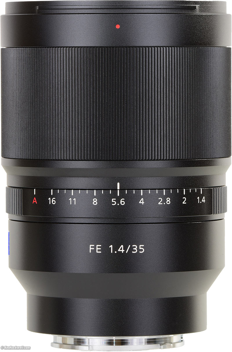 Sony Zeiss FE 35mm f/1.4Full-Frame Distagon T✻Sample Images Intro Compatibility Format Specs Performance Compared Recommendations More NEW: Sony FE 35mm f/1.4 GMSony: A9 III A1 II A1 A9 II A7R V A7R IV A7 IV A7 III A7S III A7CR A7C II A7c ZV-E1 A6700 A6600 A6400 A6100 ZV-E10 II ZV-E10 ZV-1 II RX10/4 RX100/7 Flash Lenses Sony Zeiss Distagon T✻ 35mm f/1.4 FE (fits Sony NEX only, metal 72mm filter thread, 22.2 oz./630 g, 1'/0.3m close-focus, about $1,598). bigger. I got mine at B&H. I'd also get it at Adorama or at Amazon. This all-content, junk-free website's biggest source of support is when you use those or any of these links to approved sources when you get anything, regardless of the country in which you live. Sony and Zeiss do not seal any of their boxes, so never buy at retail or any source not on my personally approved list since you'll have no way of knowing if you're missing accessories, getting a defective, dropped, damaged or used lens, a customer return or if the warranty has already been registered to someone else online! The approved sources I use ship from secure, remote automated warehouses where salespeople or other customers never, ever get to touch your lens before you do, and they have the best prices, selection, service and return policies. May 2021 Sony Zeiss Canon Nikon LEICA Hasselblad Fuji All Reviews Why Fixed Lenses Take Better Pictures