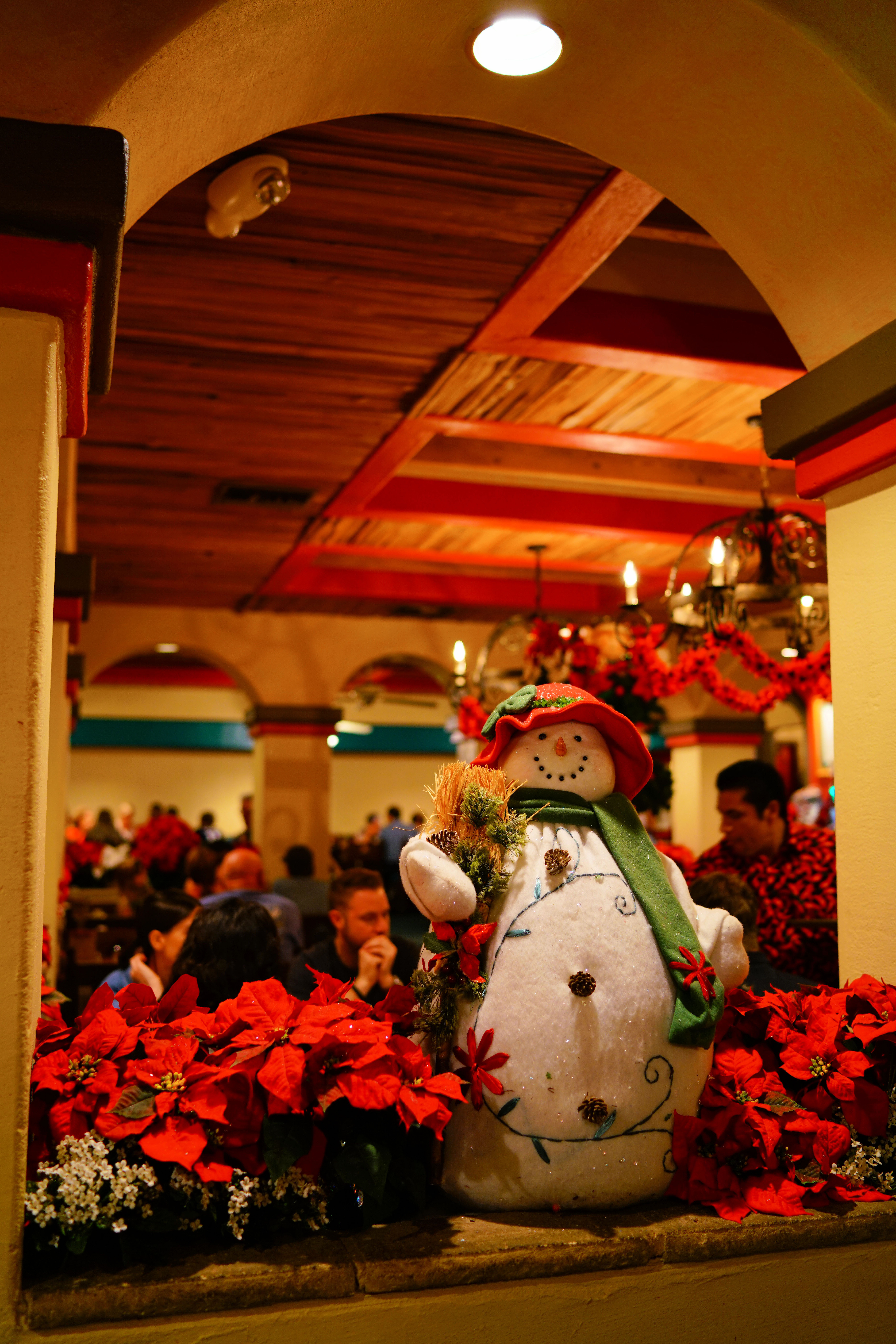 Snowman at Don Jose's, 22 November 2015. Sony A7R II, Zeiss 35mm f/1.4, f/2 at 1/30 at Auto ISO 640. bigger or full-size © file to explore on your computer (mobile devices rarely can display the full resolution). Not only does it shoot in any light; it looks great doing it. Look at how the backgrounds melt away beautifully.