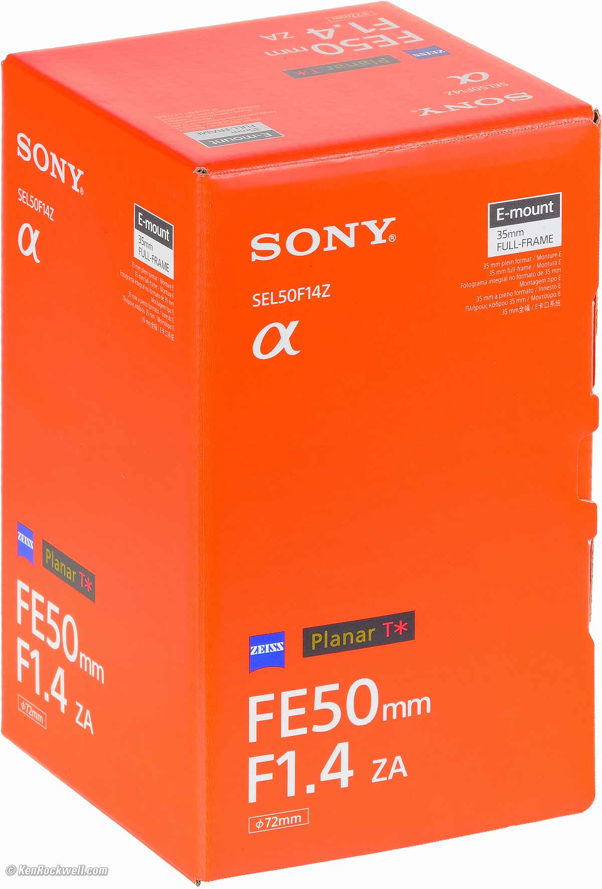 NameSony Zeiss Planar T✻ 50mm f/1.4 FE. bigger. Sony calls this the Zeiss Planar T✻ FE 1,4/50 ZA. Zeiss: Brand name of famous German lens company. (Lens is actually made by Sony under license in Thailand; it's not made by Zeiss.) Planar: Zeiss' trade name for a normal lenses. T✻: Zeiss' trademark for multicoating, standard on all camera lenses of all brands since the 1970s. FE: Full frame coverage lens for Sony's E-Mount cameras. ZA: Solidarity with South Africa. Sony Part Number: SEL50F14Z.