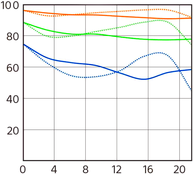 MTF at f/1.4 at 10 cyc, 20 cyc and 40 cyc/mm. |