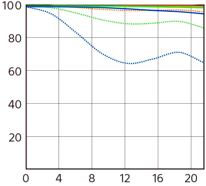 MTF at f/8 at 10 cyc, 20 cyc and 40 cyc/mm. |