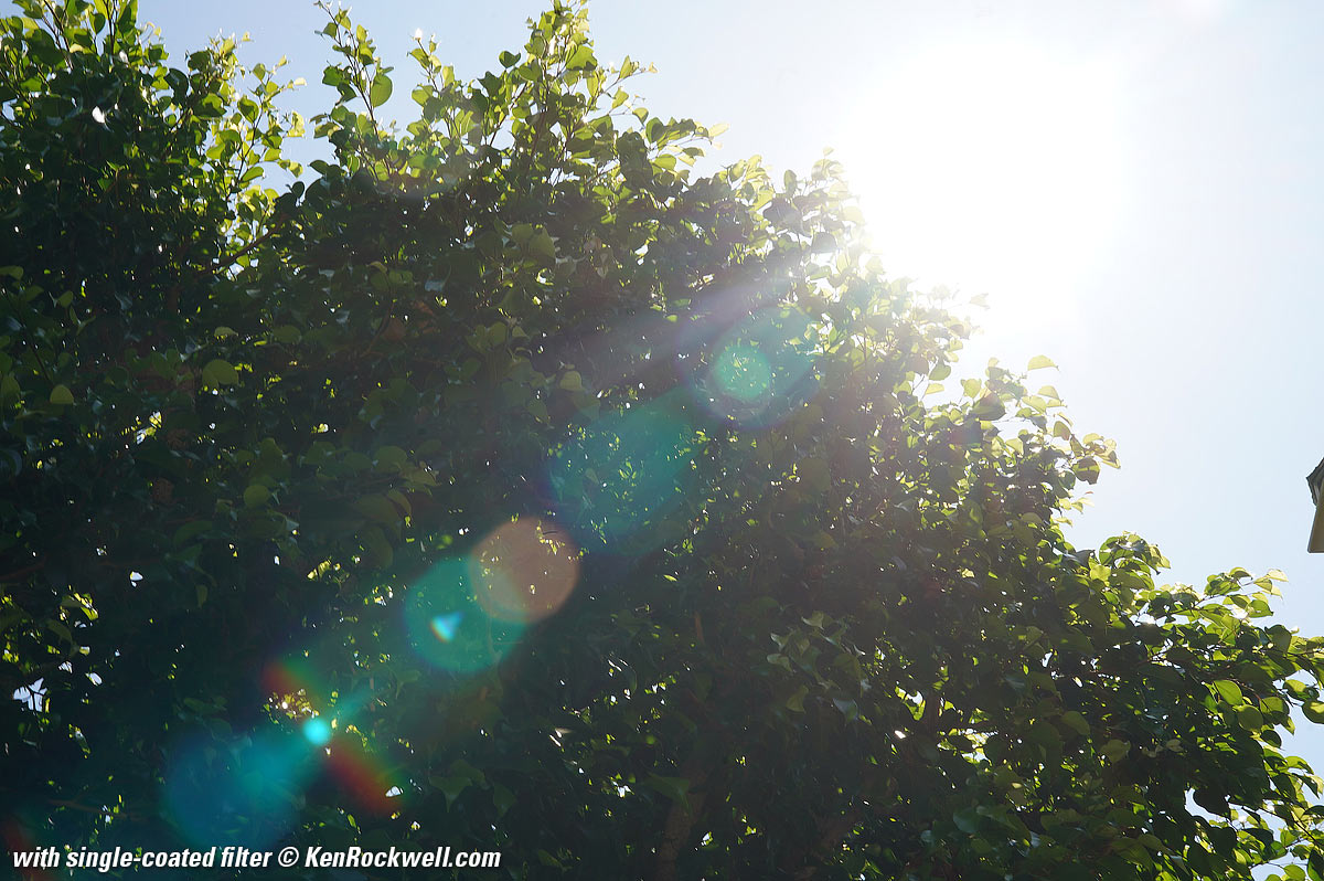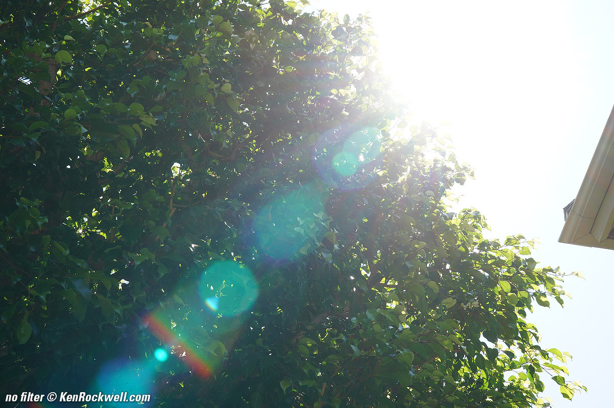 There are some ghosts and flare if you do silly things like shoot dark trees with the direct light of the sun in one corner of the frame as I've done here. The good news is that there isn't much penalty for leaving a filter on the lens.