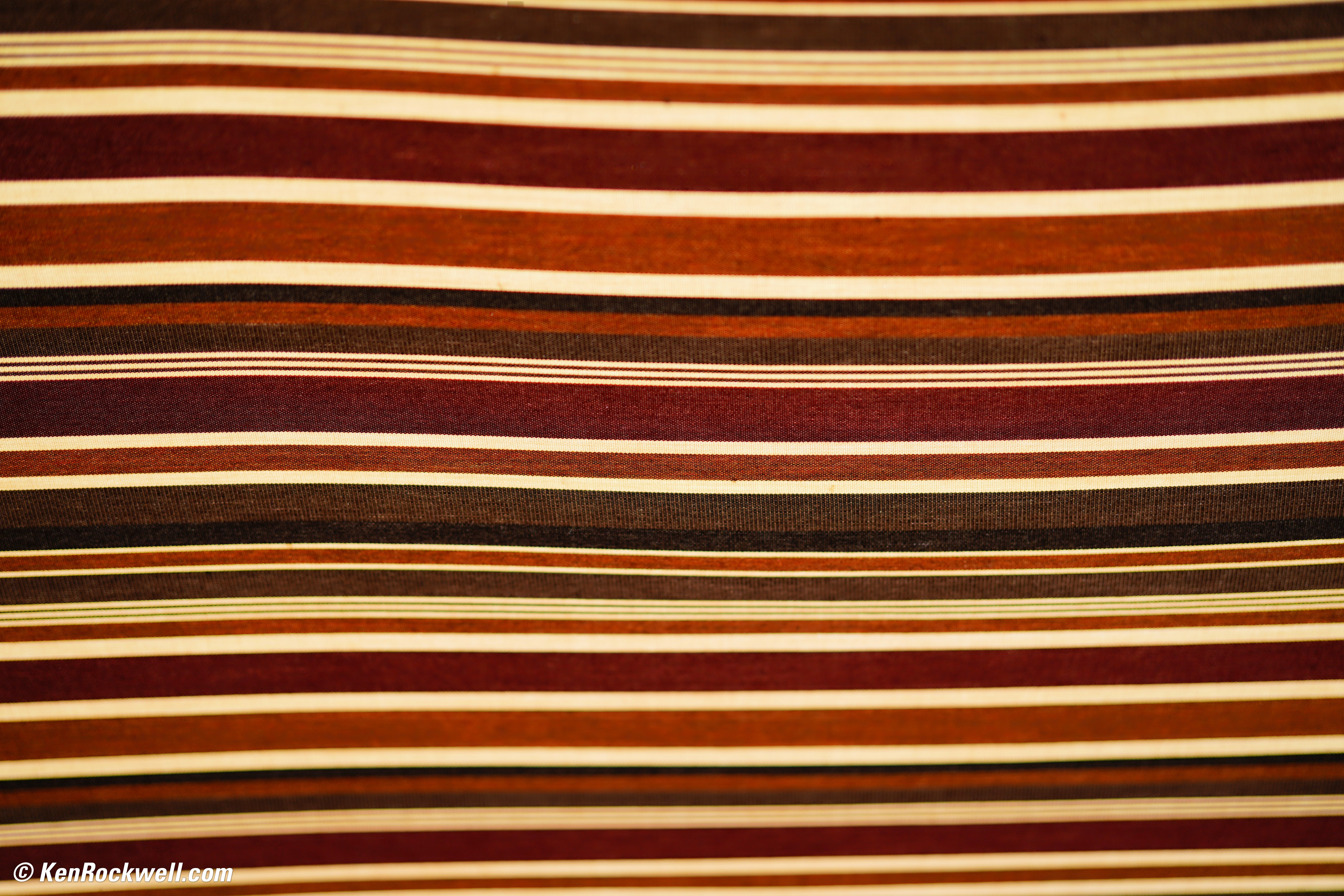 This is shot from inside the umbrella, and the panel is sloped away from you at the bottom. You'll see that it's ultra-sharp, even wide-open here at f/1.4, from side-to-side where it's in focus, and the educated eye will see the colored effects of spherochromatism above and below where the fabric is closer and then farther away than than the plane of focus.