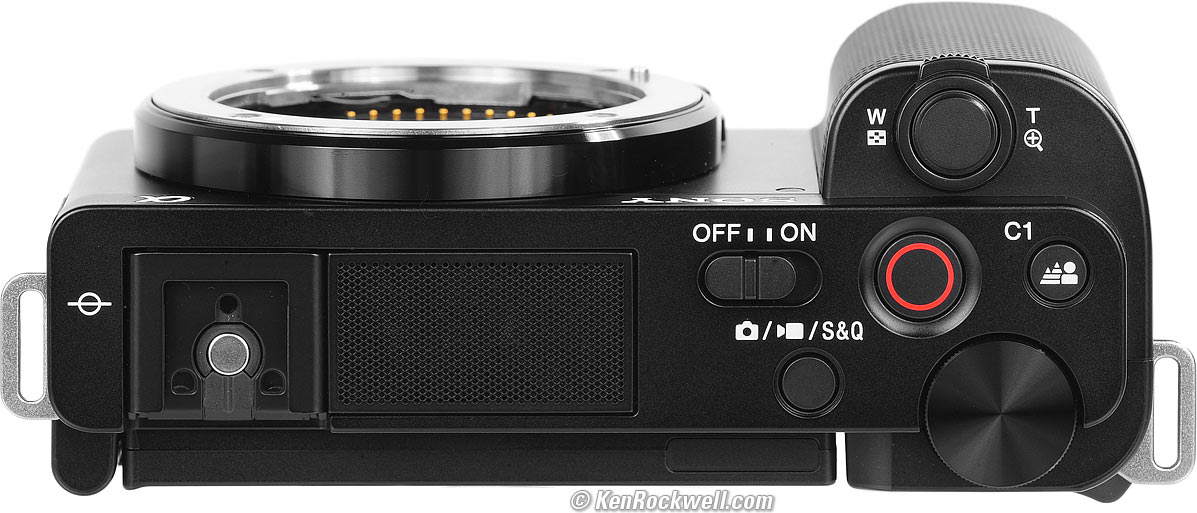July 2022 Better Pictures Sony Sony Lenses Canon Nikon Fuji LEICA Zeiss All Reviews Sony ZV-E10. bigger. For some reason the lugs are closest to the back of the camera, so with a lens it always tips forward when carried. The perforated area next to the hot shoe is the stereo microphone array.