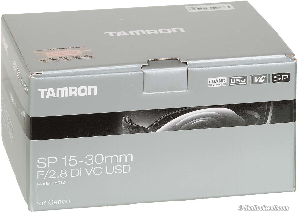 Tamron 15-30mm f/2.8Full-Frame VC Di USD (2015-2018)Sample Images Intro Format Compatibility Specs USA Version Unboxing Performance Compared Usage Recommendations Tamron SP 15-30mm f/2.8 Di VC USD (takes no filters unless you buy a special adapter, 38.1 oz./1,079g, 0.9'/0.28m close focus, about $1,099) bigger. I got my Canon version at B&H, which I'd also get at Adorama or at Amazon. There is a Nikon version available at B&H, at Adorama and at Amazon. There's also a Sony version at B&H, at Adorama and at Amazon — but the Sony version has no image stabilization and does not work on Sony E-mount mirrorless cameras. The Sony version only works on the old A-mount Sony DSLRs and Minolta Maxxum cameras from the 1980s. This all-content, junk-free websites biggest source of support is when you use those or any of these links to my personally-approved sources when you get anything, regardless of the country in which you live. Tamron does not seal its boxes in any way, so never buy at retail or any other source not on my personally approved list since you'll have no way of knowing if you're missing accessories, getting a defective, damaged, returned, non-USA, store demo or used lens. Get yours only from the approved sources I use myself for the best prices, service, return policies and selection. Thanks for helping me help you! Ken. May 2018 Canon Sony Nikon Tamron Fuji LEICA Zeiss Hasselblad all reviews NEW: Tamron 15-30mm f/2.8 G2 for Canon and for Nikon F DSLR. 31 August 2018 Nikon 14-24mm f/2.8 G FX (check price) Nikon 14mm f/2.8 FX (check price) Nikon 17-35mm f/2.8 FX (check price) Nikon 16-35mm f/4 VR FX (check price) Canon 11-24mm f/4 L (check price) Canon 16-35mm f/2.8 L III (check price) Canon 16-35mm f/4 L IS (check price) Canon 14mm f/2.8 L II (check price) Sony 16-35mm f/2.8 GM (check price) Sony 12-24mm f/4 G (check price)