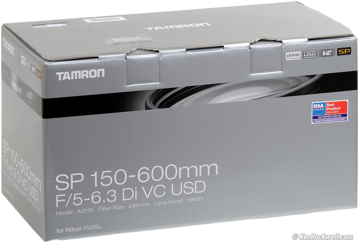 Recommendations top Introduction Sample Images Specifications Performance Usage Compared Recommendations The Tamron 150-600mm f/5-6.3 is a great lens for the price. It really does feel good in-hand, works well and gives excellent results. Compared to spending twice as much for the Canon 100-400mm II or almost three times as much for the mostly plastic Nikon 80-400mm VR AF-S, this Tamron is a great lens for the next few years. If you've been considering one, by all means get it. Never buy a third-party lens as a long term investment, but if you're happy to get several years of great pictures out of it for a bargain price, go for it. Tamron's rear caps are crummy. I'd get a real Nikon rear cap ($3.50) or Canon rear cap ($7) for it. I'd leave a 95mm UV filter on the lens at all times. I'd specifically get the B+W multicoated 95mm filter. At 600mm, you don't want too cheap a filter. Then again, you're buying a third-party lens because you don't mind taking chances to save some cash. Seeing how a good 95mm filter sells for more than 10% the price of this lens, maybe you want to go commando and forget the filter. Tamron does not seal its boxes, so never buy at retail since God only knows what has happened or where the lens has been before it's bought by you; only buy from approved sources. One drop from the counter by the customer before you at a retail store before the lens is put back and sold to you can really mess up a zoom like this. This is a very popular lens, and therefore isn't always in stock. Just order and be patient and resist the temptation to get one at retail if you find it. If it's sitting in a store, there is a reason why. If you've found my honest opinion helpful, know that my main source of support to share this all-content, junk-free website comes from you using these links to it in Nikon mount, Canon mount and Sony Alpha & Minolta MAXXUM mount, or using any of these links when you get anything, regardless of the country in which you live. It helps me keep reviewing these lenses when you get yours through these links — but I receive nothing for my efforts if you take your chances and buy elsewhere. Thanks for your support! Ken.