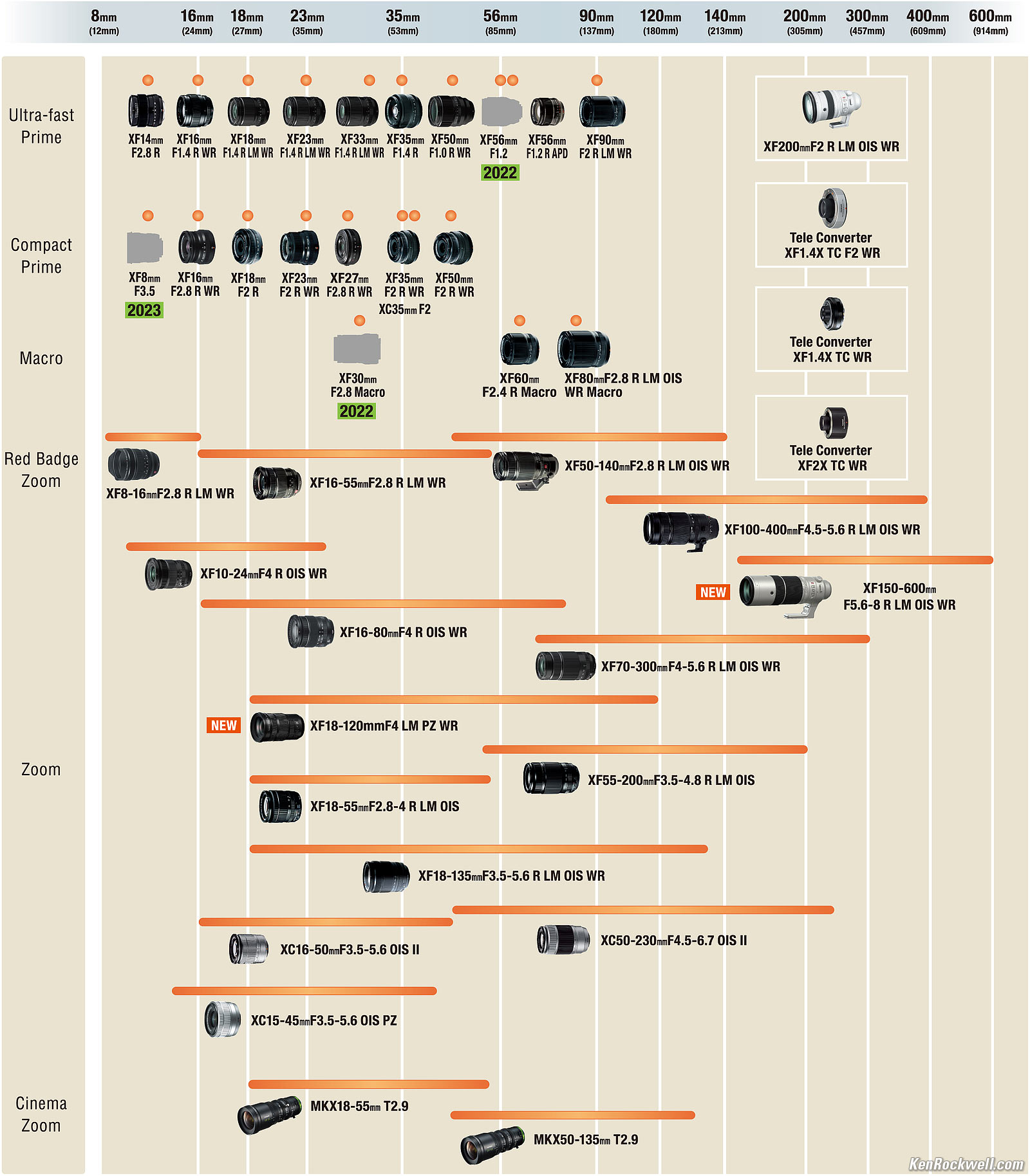 Fujifilm: GFX100RF GFX 100S II GFX 100 II GFX100 GFX50R X100VI X100V X100F X-T30 III X-E5 X-H2 X‑H2s X-T5 X-T50 X-M5 X‑T30 X-S20 Film Lenses
