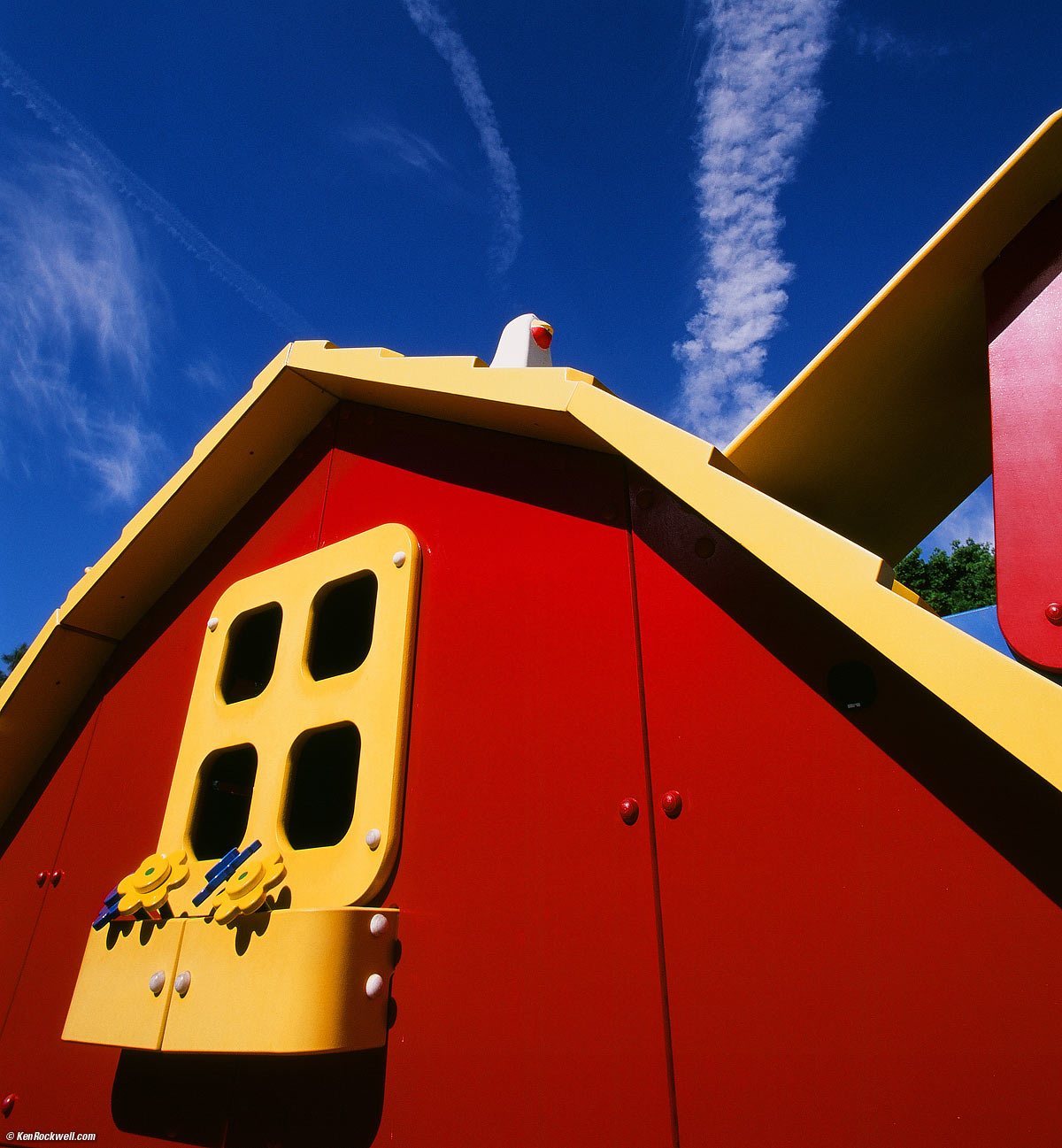 Color Nice colors! enlarge. Shot at Legoland, Nikon F6, Velvia 50, roll 27, shot 19 (EXIF data), NCPS process and scan, Nikkor 18mm f/2.8 AF-D, shifted program to 1/100 and f/9, Nikon A2 (mild warming) filter. Exactly as scanned, although I cropped some off the top of this verical shot.