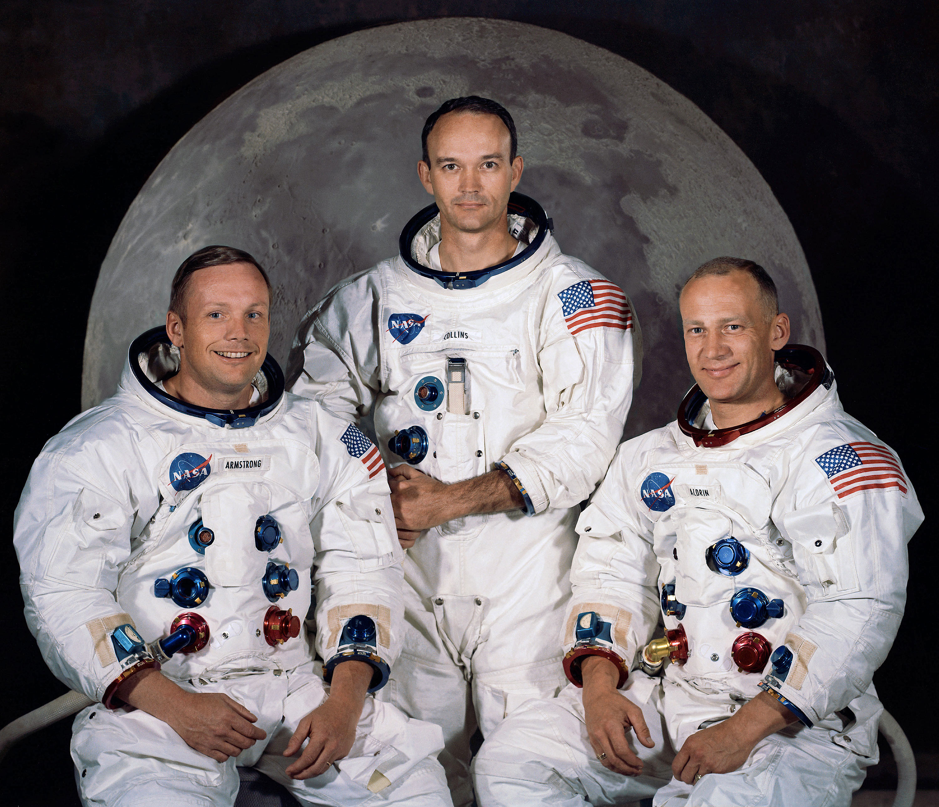 At T-3 hours, 07 minutes (3:25 AM PDT, 6:25 A.M. EDT or 10:25 UT) astronauts Neil A. Armstrong, commander; Michael Collins, command module pilot; and Edwin E. Aldrin Jr., lunar module pilot, ride the special transport van over to Launch Complex 39A where their spacecraft awaits.
