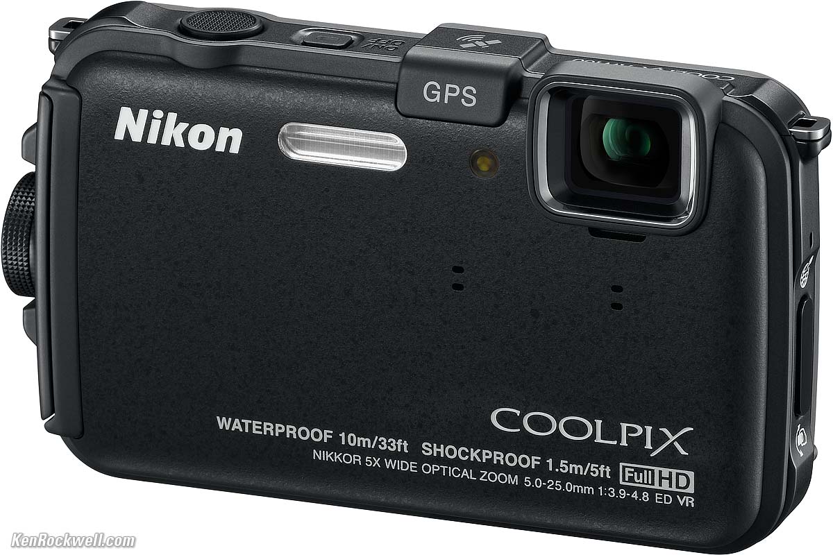 10 Megapixels. 3.0," 921,000-dot tilting LCD. 7.1x Wide Angle Optical Zoom. HD movies. Full manual controls with control dials for creative control. Available in September 2011 for $499.95 in Black. Coolpix AW100. bigger. Nikon’s first rugged point-and-shoot camera — waterproof, freeze proof and shockproof — an answer to Canon's excellent D10 that was launched last decade. Coolpix AW100. bigger. 16 Megapixel backside illuminated CMOS sensor. Nikon uses the acronym "BSI" sensor. You gotta love Nikon's acronyms, almost as good as CBS TV's "See BS" acronym for Columbia Broadcasting System. Even without the BS acronym, "backside illuminator" is a hoot. I sure hope it doesn't use fire, like BrownFlame.com. Sorry; with a 4-year old, this is scholarly discussion around here. Coolpix AW100 with lens-attachment gizmo. bigger. GPS-tagger and internal map display; allows photos to be shown on the map. Available in September 2011 for $379.95 in Black, Blue and Orange. 20 lumen built-in projector, "40% brighter," but Nikon doesn't say 40% brighter than what. Honestly, though, I was astonded at how well the projector in the first S1000PJ worked; it actually projected all by itself on battery power, and I expected nothing. Built-in projector works with an iPhone, iPad or iPod touch as well as a computer to allow users to project images and movies stored on these devices or from online. 14 Megapixels. 5x Optical Zoom 720p movies with stereo sound. 3.0-inch LCD. Available in September 2011 for $429.95 in Black and Pink. 16 Megapixels. 3.0" 921,000-dot LCD. 14x Optical Zoom. Very sleek, compact body. 1080p movies, one-touch operation, optical zoom, stereo sound and the ability to capture still images during recording. High-speed continuous shooting which can capture five shots at up to six frames-per-second — in other words, less than one second of burst capability. Available in September 2011 for $329.95 in Black, Red, and Silver.