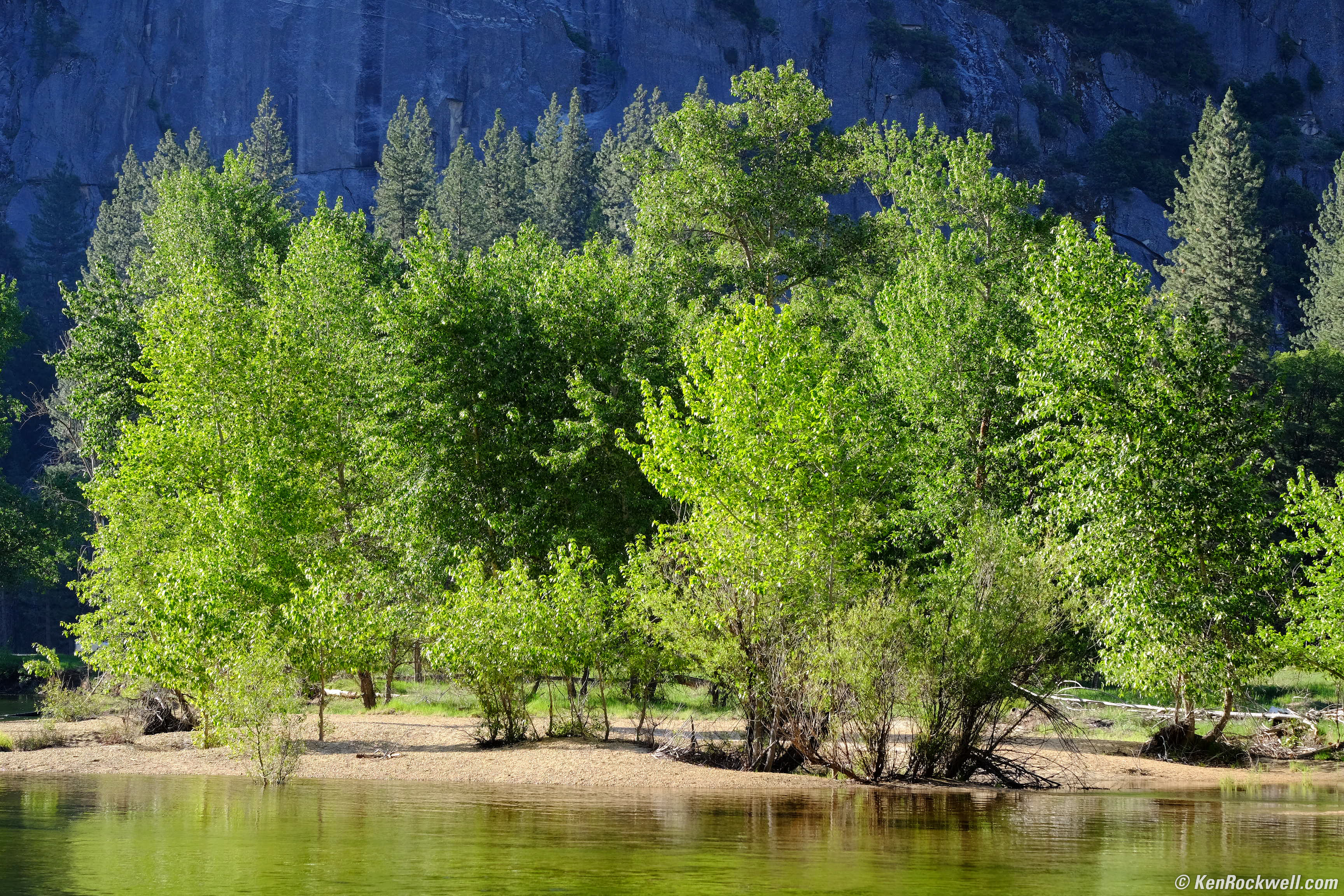 Fuji X-T1 and 55-200 OIS: Any good? I'm just getting back from my Yosemite trip last weekend and sorting photos I shot on the Fuji X-T1. Here's a full-resolution image from a camera-original JPG shot with the Fuji XF 55-200mm whose review I'm writing. Merced River, Yosemite Valley, 7:43 AM, 18 May 2014. Fuji X-T1 at Auto ISO 200 and Auto DR 100, 67mm at f/5.6 at 1/170 handheld, Athentech Perfectly Clear. bigger or full-resolution from camera-original JPG. Look OK? Even as I shot it at Medium NORMAL JPG, I can count every pine needle. This Fuji stuff is good!