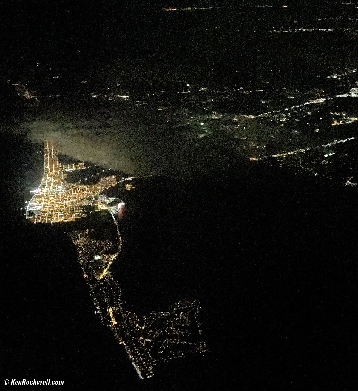 iPhone 6 Plus My iPhone 6 Plus arrived as I was heading out, so I barely had time to transfer all my files and be sure I could log-in to all my apps. I know you all want to know about it, so here are some quick observations. Of course it's fantastic. The camera is the best pocket camera ever conceived. Sure, a Canon Powershot has a broader zoom range and more features, but since I'm already packing my Nikon and the iPhone 6 Plus, who cares? Not only is the 6 Plus camera extraordinary, I can do anything with the photos right from the iPhone, while I can't do anything with Powershot or Nikon photos until they are transferred to a computer — or the iPhone. Of course the iPhone shots have fantastic colors (as good as Nikon and Canon and better than Fuji, LEICA or Sony (Fuji is great for people, but no mirrorless is as good as Nikon or Canon for everything else)), and they are super-sharp. As we expect, iPhone exposure is always right on, with a better hit-rate than a DSLR. New in the iPhone 6 Plus is optical image stabilization, and it really works. Of course the photos are sharp in dim light, but more importantly, the iPhone 6 Plus shoots in much darker light than previous iPhones. I can shoot outdoors at night with no flash and get swell pictures, while my iPhone 5S just got black screens. The range of light over which we can shoot the iPhone 6 Plus has been significantly extended into darkness. A DSLR still works better in the dark, since the iPhone 6 Plus tends to reduce color saturation to reduce noise, but so what: I can shoot in the dark and get real photos with the iPhone 6 Plus in conditions to which iPhone 5S used to be blind. Also terrific about the 6 Plus is that it comes in a 128 GB version. I finally can fit all the music I actually listen to into it, as well as have plenty of room for hours and hours of video. Because the iPhone 6 Plus screen is so big, I left my iPad at home and can watch movies on the iPhone screen instead. I travel as light as possible, and with my iPhone 6 Plus, the iPad isn't needed. Some people wanted prints right away, and lo and behold, I got the Costco app and was able to send images to print at the Costco right near me. As soon as I went there, they were done. Not only could I print the photos I just shot, they were real photo prints that look fantastic and will never fade like Polaroids. Just as easily as printing what I just shot on the iPhone, I was able to print any of the images I stored on the iPhone that I synced from galleries in my Mac. In other words, I could print on demand, and with the huge storage in the iPhone 6 Plus, had much of my archive in my pocket for instant printing. The big battery in the iPhone 6 Plus lasts a long time, especially when using power-hog apps like Google Maps. The 6 Plus battery is big enough to light the big screen, while power-hungry apps don't draw any more power in the 6 Plus than they do on smaller devices. Thus the extra capacity goes a very long way so we can use these apps freely without having to charge during the day. I use my 6 Plus hard all day, and still have 35% left every night. The big battery can take longer to charge, if you use the same iPhone charger that comes with it and every iPhone. Here's a tip: I use the larger iPad charger, and my 6 Plus charges in an hour. I suppose if it was completely dead it might take 2 hours to hit 100%, but since charges at about 1% per minute from an iPad charger it goes from 35% to 90% in an hour. Like all cell phones, I usually can't understand anything over cell phone calls. Audio is usually garbled, dull and awful since cell companies limit the call's audio frequency response to about 3 kHz and then throw away most of the audio data as part of the very lossy data compression used to cram your call over as little bandwidth as possible, typically 16 kb/s. Here's anther hint: Ryan now calls me over FaceTime and FaceTime audio. FaceTime audio is fantastic: it's full-bandwidth and sounds like he's right there. It's 100% clear and I can hear everything! FaceTime audio and regular FaceTime video also use very little data, so I don't see any extra cellular data usage. If you want to be able to talk on the phone as clearly as if you are in the room with someone, try FaceTime audio. Shot out airplane window at night. (iPhone 6 Plus at f/2.2 at 1/15 at ISO 2,000, Perfecty Clear). bigger.