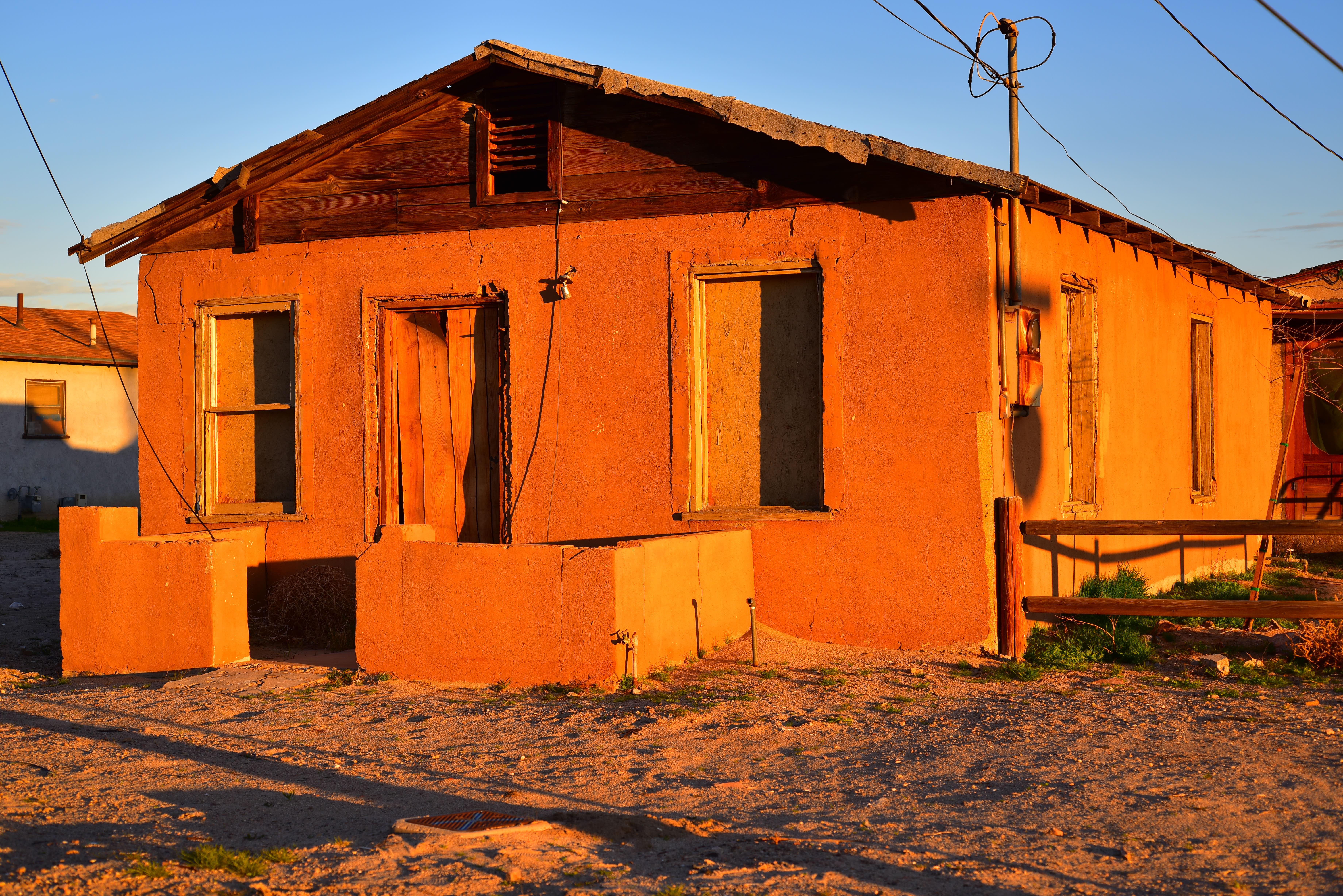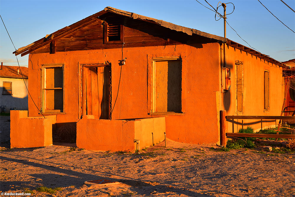 Home at dawn, Barstow. Nikon D810, 55mm f/3.5 Micro-NIKKOR AI, f/5.6 at 1/125 shot out of a convertible at ISO 100, as-shot. Bigger or Camera-original file. Not bad for a $50 lens, eh? Nikon definitely does not want you to know that these nearly free lenses work so well, so just ignore this. I shoot most of my work, except tests with my D810 set to lower resolution so I can process all the files faster, but shooting at full resolution for a change, it's astounding what this classic glass can do.
