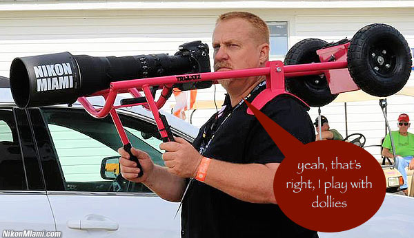 Photo Caption Contest Winners I ran a funny photo from The Bulldog at Nikon Miami (the world's greatest ground-to-air photographers) for your caption ideas last week. I got the idea for the contest when it looked like a photographer got hit by a hand truck that fell out off the roof of a topless bar. And the winners are: Only 5 more reps and that bikini HAS to fit (Mr. Lanning). bigger. (graphic from Carlos.) "No! I don't take selfies with it!" (Tom) "Rent Uhaul dollies now with Nikon back-up cameras to avoid hitting your valuable furniture while moving." (Dr. Luizaga) "I should be able to get this past airport security okay?" (Jeremy) "WHEELY WONG STUFF" (Mark Lindquist) "New Product: SAN (surface to air Nikon) exclusively "It's easier than carrying a tripod on an escalator." (Ben) "Keep on truckin' Bulldog!" (Kenneth) "I can't wait to find the guy who stole my tripod." (Jack)