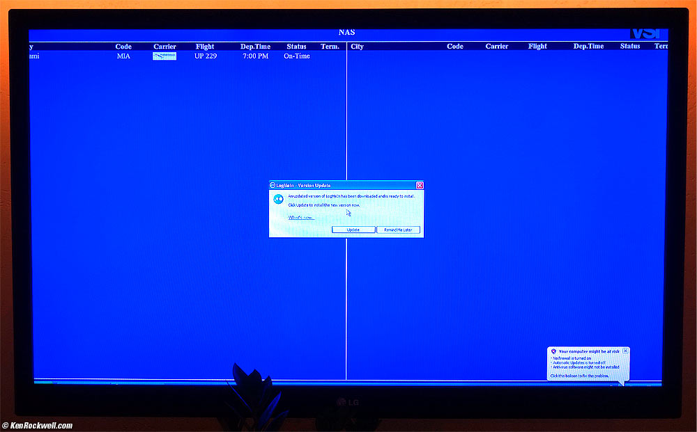 New: Windows 93 LIVE VIDEO: Ryan uses the Windows 93 operating system. (iPhone 6 Plus emailed video.) PLAY VIDEO. My son finds all the good stuff I miss. He found a free online game that simulates Windows 95, and has a hoot of a time trying to get it to work and work around virii, phony cures, ASCII-based animations and everything else, like having to hit START to turn it off. I especially love playing the Hydra.exe virus. The funny thing is how well it duplicates Windows 95, but I had to explain that this game actually runs much faster, cleaner and with fewer bugs than Windows ever has. The also lacks one of the best features of Windows, the Blue Screens of Death, which is pretty much how every real attempt to run Windows ends. It also just closes down instantly when you tell it to. I was always in stitches back when I had a real job and they used Windows PCs, and the things would crash in the middle of trying to shut down. Wow, so a new version of Windows. How many times will people believe the lines of "more stable operation, better access to the internet..." from those people? I was also in stitches while we were in the Bahamas last week, and the resort couldn't print wristbands for the pool for several hours while its towel-hut kiosks all displayed white screens with big exclamation points and meaningless gobbeldy gook error messages which told us that the resort made the very expensive mistake of listening to its IT department whose jobs depend on these things breaking all the time; sort of like the guy who hires a stranger to rob another friend so he can "save" the friend and look like a hero. Airline departure screen in resort. buggier. Anyway, the same resort had other big screen TVs around showing airline departures. A few days into our trip they started displaying meaningless Windows error messages, telling the traveler that the resorts computers were crummy or whatever, and a few days later, those monitors were turned off for the rest of our trip since I'll presume no one could figure it out. My son was in stitches as we discussed the expensive mistakes businesses make when trying to save a few hundred dollars on cheap computers. Ryan told us how the Windows PC in his 1st grade class had a virus a year and a half ago, and his teacher called the phone number that popped up. I nearly spit out my drink with schadenfreude-fueled laughter, since we all know that if your computer pops up a number to call, that you don't do it! Anyway, when I explained to him that number calls the virus makers directly, he couldn't stop laughing when he told us that "yeah, my teacher kept calling that number, and the computer just ran worse and worse every time she did." I felt sad after a minute when the laughter wore off, because that school district has been making those same mistakes for decades. I remember in the 1990s when they bought all new low-dollar PCs, and forgot to buy any software to go with them! The kids had no way to write letters or play games, so I loaded an old copy of Photoshop and Dreamweaver on my girlfriend's classroom's PC so the kids could have something with which they could write text; as purchased, they had no way to use those new PCs! We moved to a better district that uses real (Apple) computers, and I kid you not: my 1st and 2nd graders were taught how to run Keynote (the professional version of Powerpoint) and Pages (the professional version of Word), and when they have assignments my munchkins just get on a computer and belt out presentations better than I can! When you have equipment that just runs, you can get work done instead of spending all your time fixing it. In any case, I'm giddy that some clever programmer took it upon himself to write a parody of Windows that lets us all laugh at how bad it's been — even if it lacks the blue screens of death. I've been using a potent Mac Pro for the past year and a half, and all it does is sit there silently and belt out the work as fast as I can hit it with commands — and never a glitch.