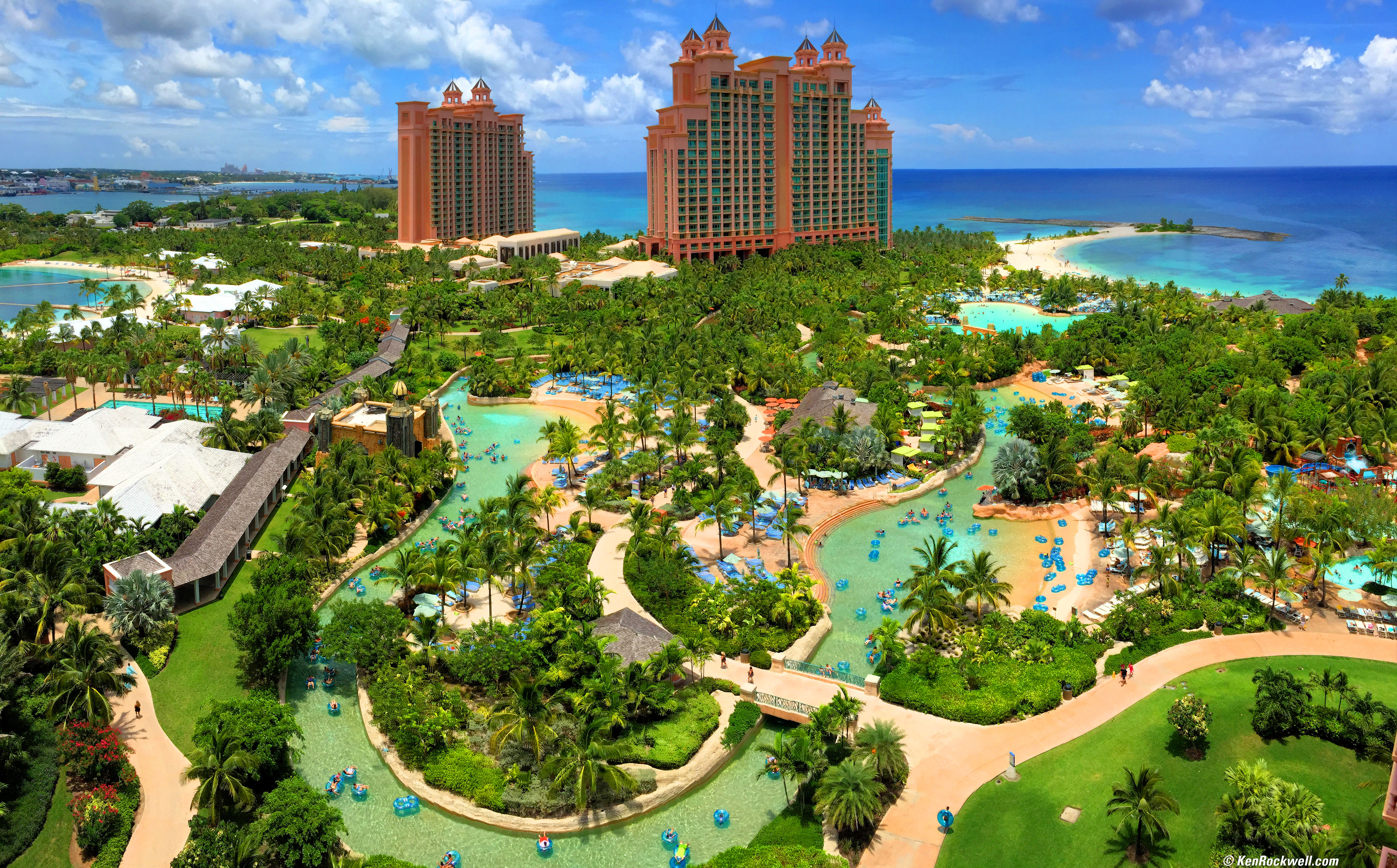 iPhone Trick Lazy River, Atlantis, Bahamas. (iPhone 6 Plus panorama, f/2.2 at 1/2,639 at ISO 32.) bigger or full-resolution. While this nearly-square shot doesn't scream "panorama!," you'll notice that the verticals are all vertical, and might notice that the vertical angle-of-view is about 50% more than you get with the usual horizontal iPhone orientation. Many people don't know that you can tilt an iPhone up or down in Panorama mode, and it works great, moving the horizon whenever you need it. Another beauty is that the iPhone cam make panorama of whatever angle you like, from narrow angles like this up to 270º! In this case, I cropped the sides, and this trick still plays to grab a wider angle than I could otherwise get, and to keep verticals vertical.