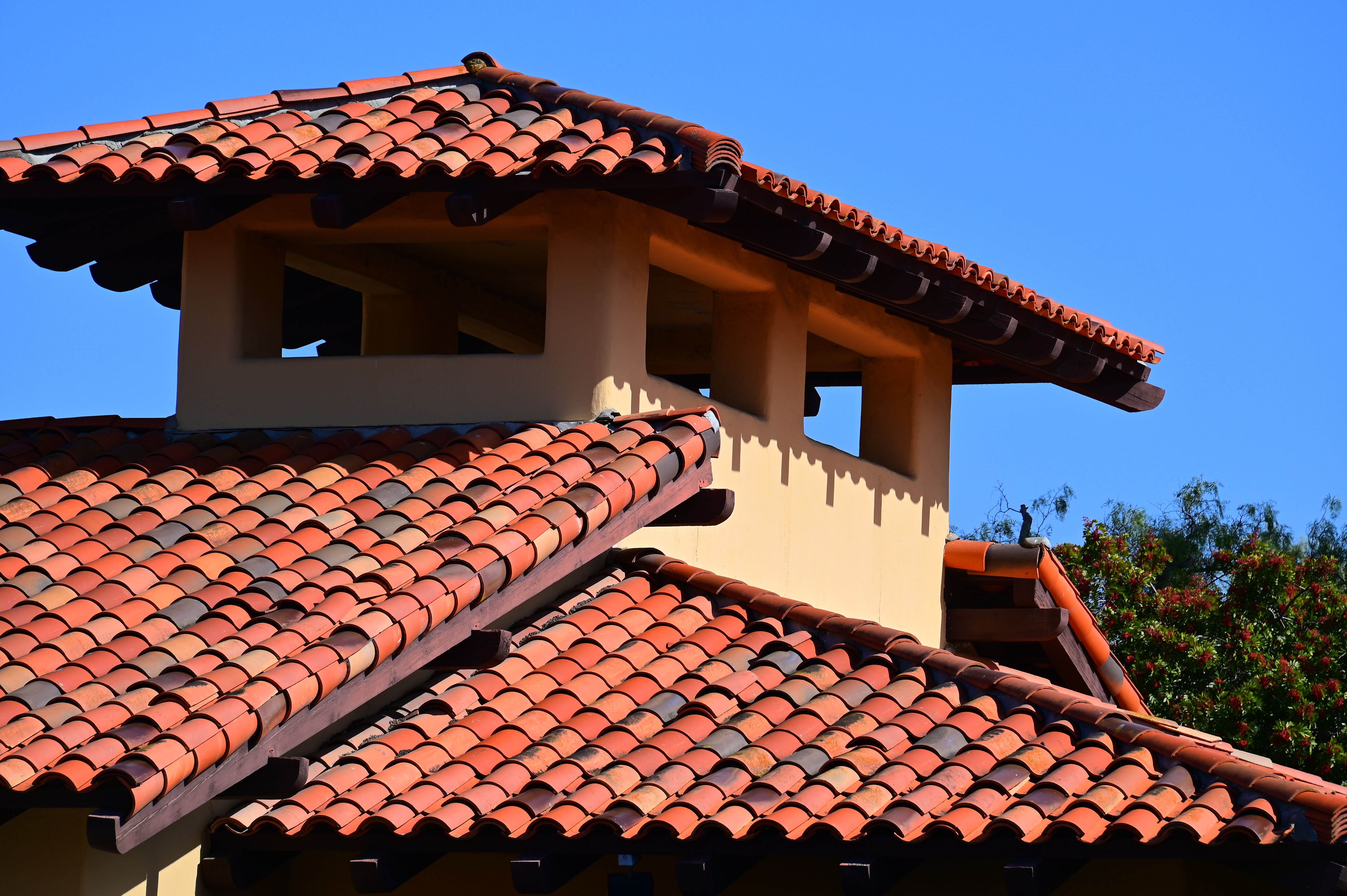 Spanish Tile in Paradise, 12:02 PM, 11 February 2020. Nikon D780, Nikon 28-300mm VR at 250mm at f/10 hand-held at 1/250 at Auto ISO 100 (LV 14.6), exactly as shot except for perspective correction in Photoshop CS6. bigger or camera-original © JPG file.