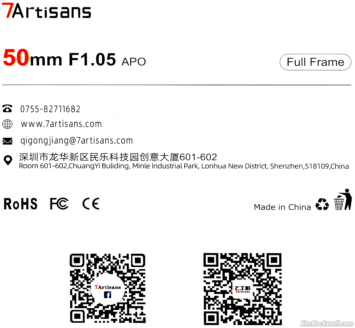 Packaging specifications topSlipcase box, 7Artisans 50mm f/1.05. bigger.