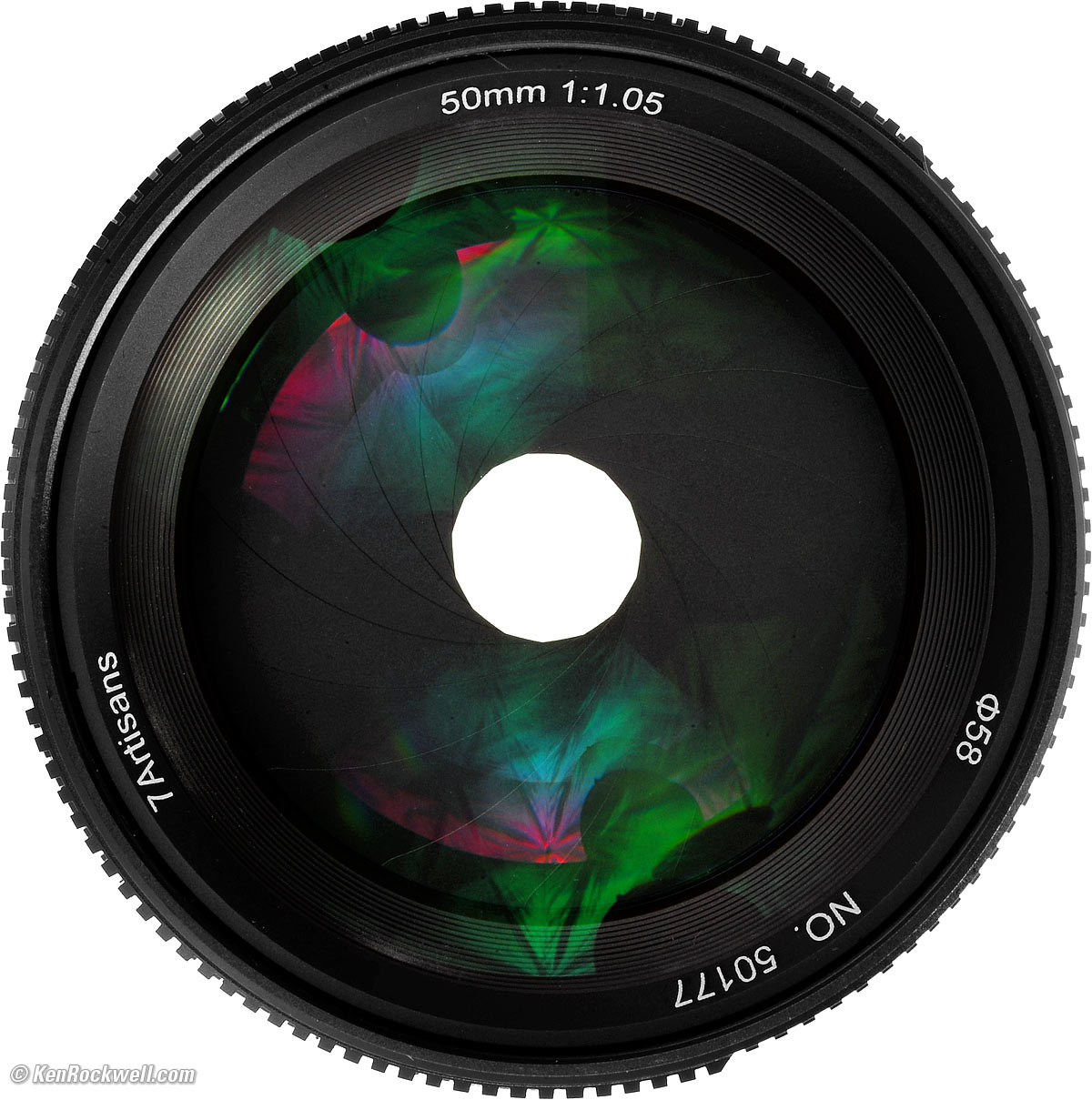 Name specifications top7Artisans calls this the 7Artisans 50mm f/1.05 APO ∅58: APO: Apochromatic, which traditionally means fully corrected at three, rather than two, wavelengths, but I suspect this is just marketing fluff here. ∅58: 58mm filter thread.
