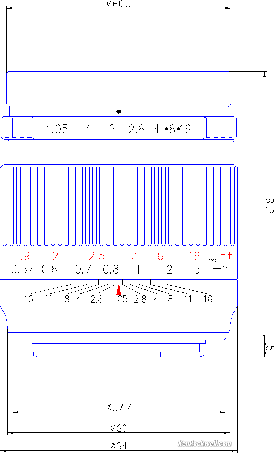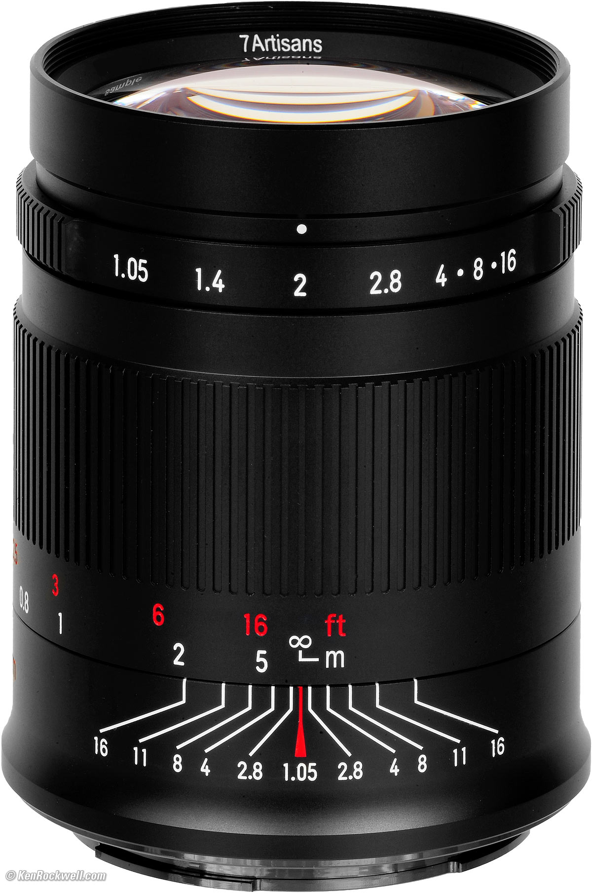 Optics specifications top7Artisans 50mm f/1.05 internal optical construction. ED elements. 10 elements in 7 groups. 2 ED elements. Floating rear group. NO aspherical elements claimed. Corrected for visible light (400~700 Å). Multicoated. TTL: 98mm. BFI: 16.1mm.