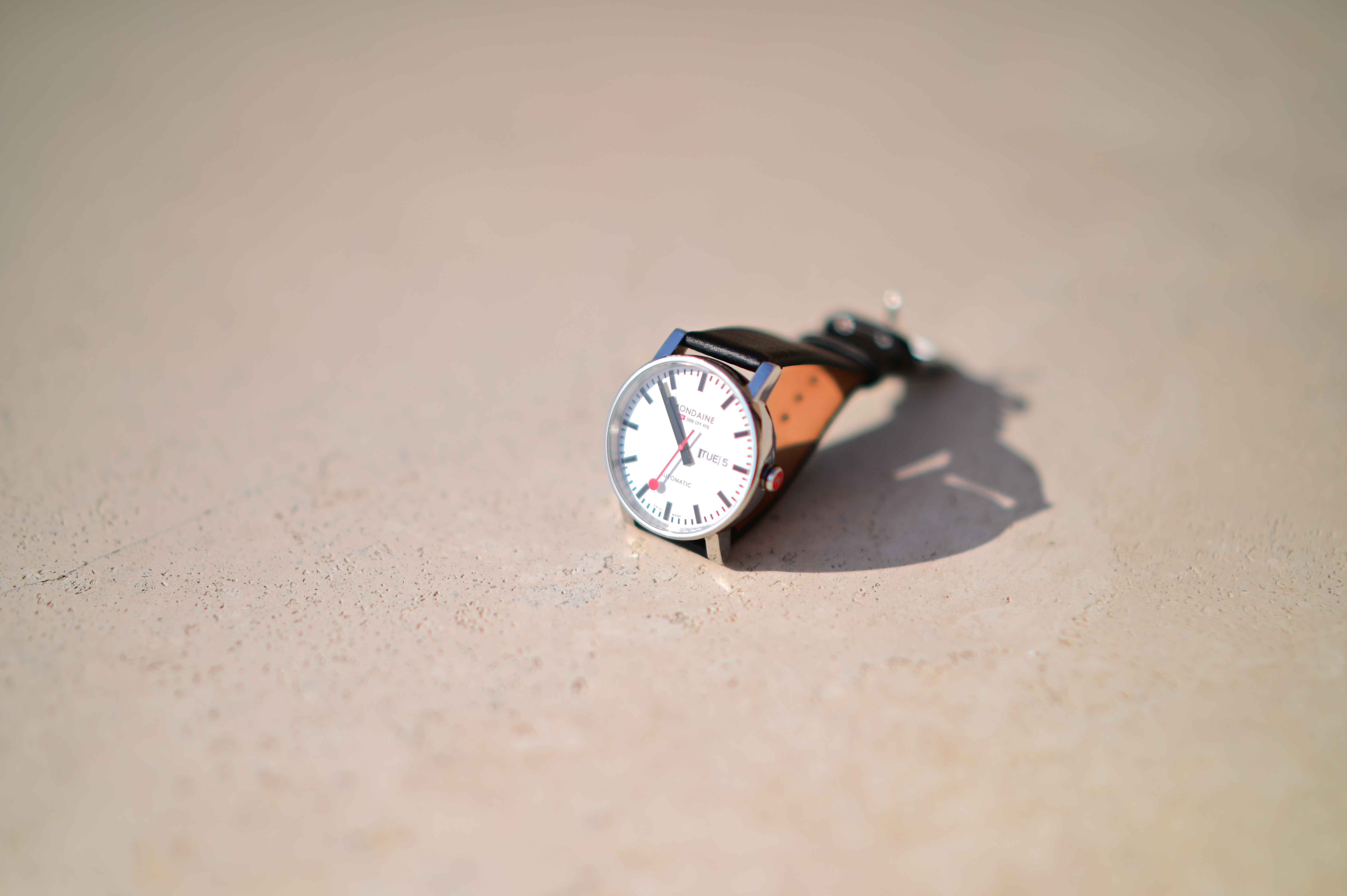 Spherochromatism performance topSpherochromatism, also called secondary spherical chromatic aberration or "color bokeh," is an advanced form of spherical and chromatic aberration in a different dimension than lateral chromatic aberration. It happens mostly in fast normal and tele lenses when spherical aberration at the ends of the color spectrum are corrected differently than in the middle of the spectrum. Spherochromatism can cause colored fringes on out-of-focus highlights, usually seen as green fringes on backgrounds and magenta fringes on foregrounds. Spherochromatism is common in fast lenses of moderate focal length when shooting contrasty items at full aperture. It goes away as stopped down. It has a lot of spherochromatism, as I'd expect for an inexpensive ultra-speed lens: You can see loads of blue-green and red-magenta fringes on out-of-focus areas at f/1.05: Mondaine A132.30348.11SBB at close-focus distance at f/1.05, 05 January 2021. bigger or camera-original © file.