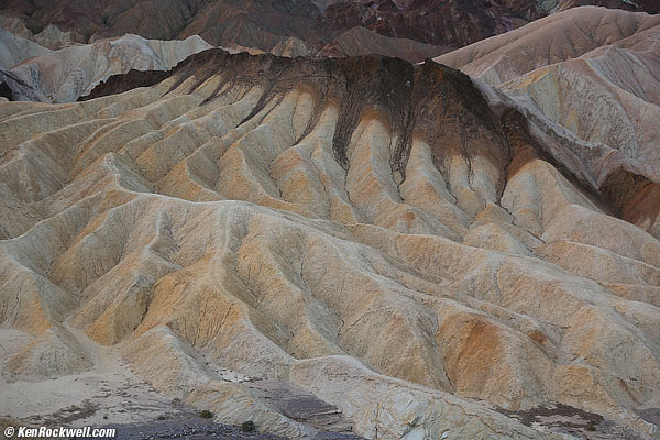 Makes things look better: Zabriski Point, Death Valley, as-shot. Roll mouse over or tap to see results after Perfectly Clear fully-automatic correction at defaults. (Canon 5D Mark III, Canon EF 24-70mm f/2.8 L II, Auto ISO 100, auto white balance A4, f/2.8 at f/60, +4 saturation, 6 sharpening). If you have no mouse, here's the "after" picture: