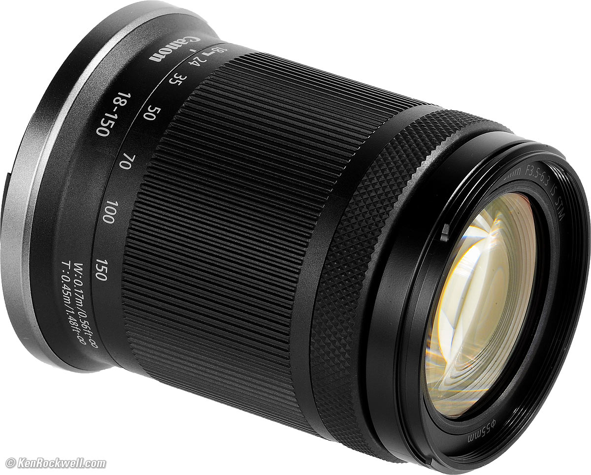 Canon EOS R10 and RF-s 18-150mm IS STMWe all have different wants, needs and budgets, and the one model of camera I find outstanding for everything because it's tiny, reasonably priced and completely competent at every kind of shooting is the Canon EOS R10 just shown above. You can pay far more but won't get any better pictures, and you'll have to carry much more weight. The world has changed a lot in the past few years, and today these APS-C cameras make the same pictures that used to require full-frame DSLRs that cost and weighed many times more. You can get pictures just as good as from the R10 with the less expensive Canon EOS R50, however the R50 lacks many convenience features. The R50's finder is dim outdoors and it's missing controls, which means experienced photographers will have to make many settings in menus rather than having direct knobs and controls to set them with one-click. The R100 is even less expensive, but lacks many basic features, like having no flip screen and requiring you to remove the battery and charge it in an external charger rather than simply charging the camera via USB. Its finder is also dim in daylight. For kids, very low budgets and people who don't shoot often, the R100 and R50 are great cameras, and make exactly the same pictures as the more expensive cameras. They just aren't as much fun to shoot all day. Don't discount a kid's interest. I started shooting when I was 5 years old, graduated to my parent's medium-format cameras about age 9 and bought my first 35mm SLR at age 11. Back when I was 9 we had to use a hand-held light meter and transfer settings manually to the camera, so if you "kid" wants a camera and is serious about it, I'd get him or her the R10, with all the features and controls and a super bright finder. There's no such thing as a "starter" camera. Even the most basic R100 makes the same great pictures as anything else today regardless of what people who want to sell you an expensive camera may claim. The real differences among cameras today is how convenient or fun they are to use. Canon RF-s 18-150mm IS STM (55mm filters, 10.9 oz./310g, 0.4~1.4'/0.12~0.43m close focus, 0.5× macro ratio, $499). bigger. I got mine at B&H. I'd also get it at Adorama or at Crutchfield, or used at eBay if you know How to Win at eBay. Hint: get this as part of a kit with your R7 or R10. Be sure to get the RF-s 18-150mm IS STM lens if you can. The 18-150mm replaces both the normal RF-s 18-45mm IS STM shown above and a separate telephoto zoom so you can get every picture by turning the zoom ring rather than having to stop everything and change lenses. I hate changing lenses, and you always need to carry the second lens with you unless you get the 18-150mm which is good for making 95% of the pictures you'll probably want to take. If you want an ultrawide lens (see How to Use Ultrawide Lenses), then get the RF-s 10-18mm IS STM. If you need an ultra-telephoto, get the RF 100-400mm. Easy! Don't walk into a retail store looking for help. Ansel Adams most definitely is not working there and the opinionated people behind the counter are definitely not your friends. Retail salespeople are trained and incentivized to upsell you to much more expensive cameras and accessories than you need. They will try to make you think you need one of the old "full frame" cameras which take exactly the same pictures, but cost much more and they and their lenses are much bigger and heavier. Worse, less is in focus with the "full frame" cameras because their larger (longer) lenses have less depth of field. It's not 2007 anymore; full frame cameras no longer have any advantage in low light and the smaller-sensor APS-C cameras I suggest have much more in-focus due to the greater depth-of-field of their smaller lenses. Full frame cameras continue to exist because they make camera companies much more money, and older photographers still remember DSLRs and film for which sensor size mattered. In the past few years mirrorless cameras have changed everything, and the APS-C sensor cameras are much smaller and less expensive, and take exactly the pictures as my exotic full frame cameras. Just look at the sample images in any of my reviews and judge for yourself. If you're asking me for my advice, then don't consider full-frame cameras unless there is some very good reason for it, like maybe astronomy. For things that need very long lenses, the smaller APS-C sensors again have a huge advantage as lenses appear to be 60% longer. To get the same picture on a full frame camera as you can get with the RF 100-400mm lens on an APS-C camera, you will need a 160-640mm lens, which is huge and very expensive. See also my comparisons of all the models of these Canon cameras. See Recommended Cameras for much more, as well as all my other reviews of everything.