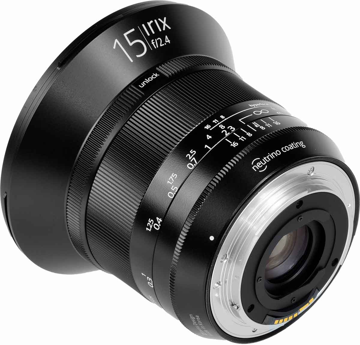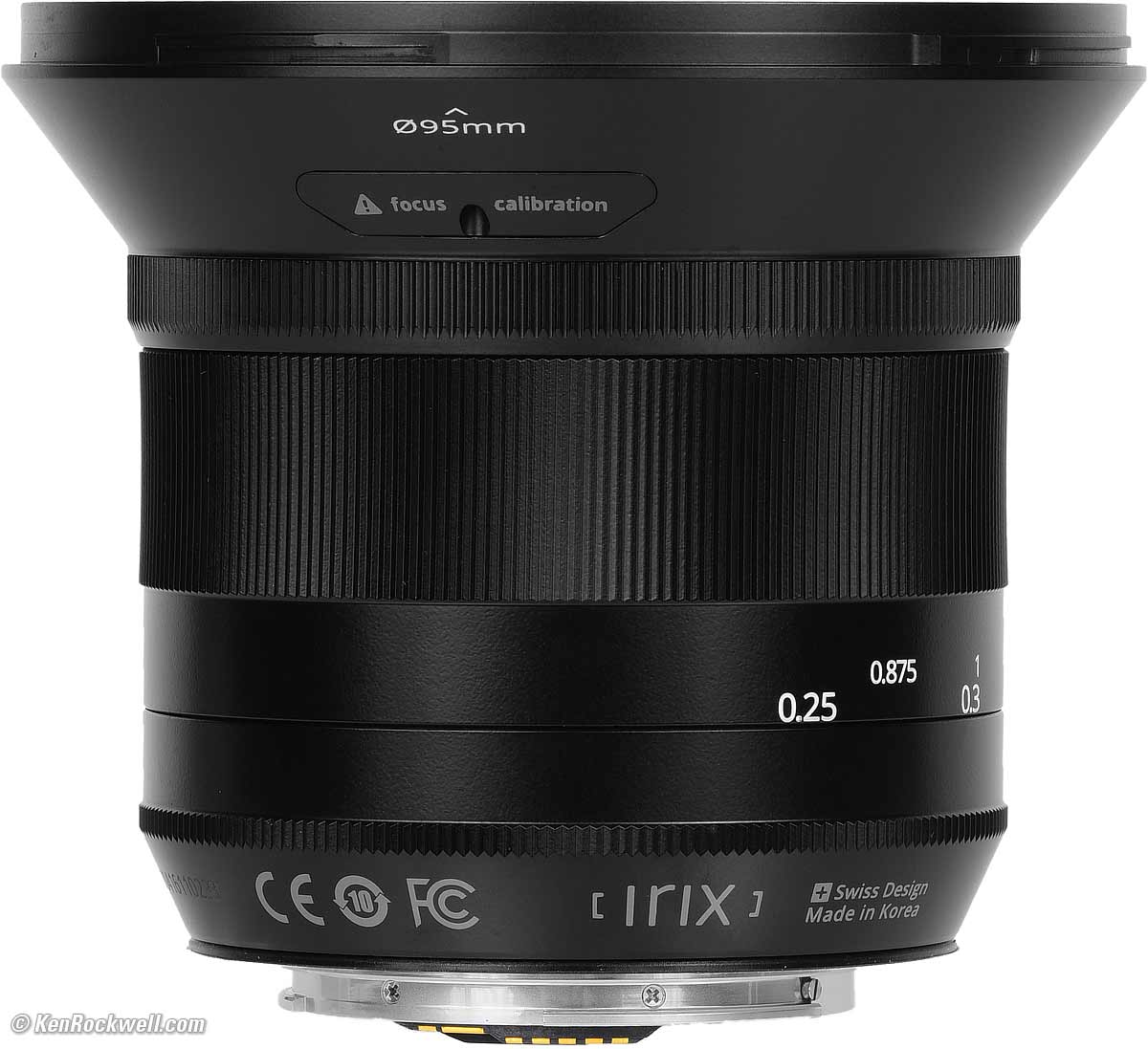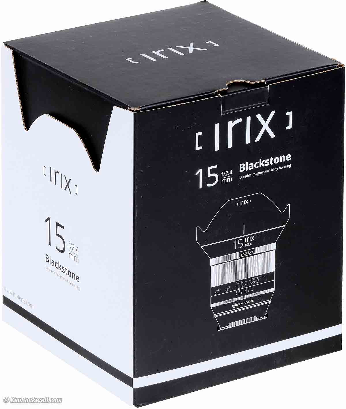 Mechanical QualityIrix 15mm f/2.4, Blackstone version for Canon. bigger. It's well made mechanically; it's all metal. The bad part is that my sample had poor focus calibration making the focus scale relatively useless, but the mechanics are sturdy and likely to live a long time. Irix says this Blackstone version has a magnesium alloy barrel; but it feels just like the usual anodized aluminum. HoodPlastic bayonet.
