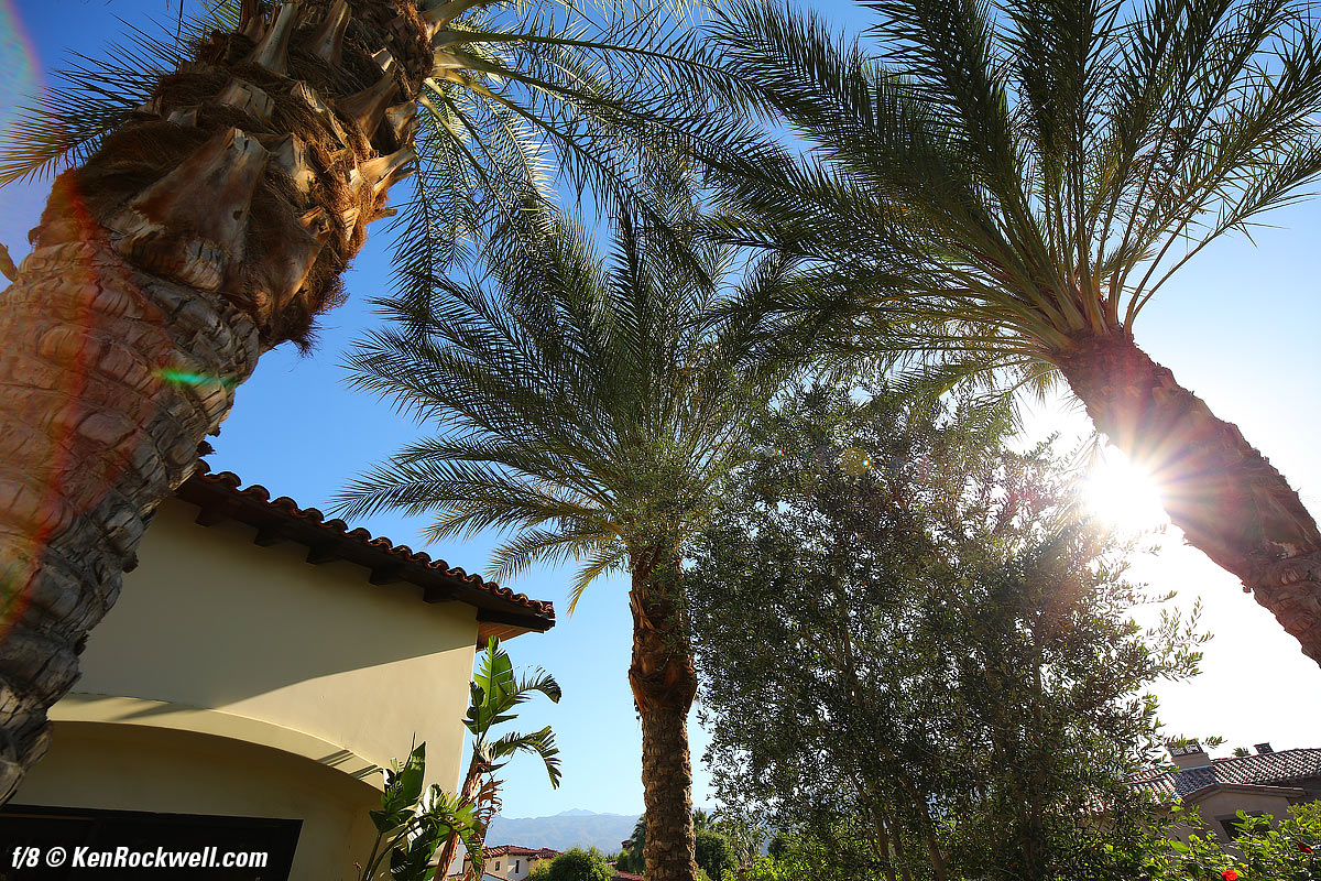 Sample ImagesTop Sample Images Intro Format Desert Palms, 13 May 2017. Canon 5DSR, Irix 15mm f/2.4, f/5.6 at 30 seconds at ISO 100. bigger, or full-resolution file to explore on your computer. The palm trunks and fronds look soft in many places because there was a lot of wind; they were blowing all over the place! See the tiny white dashes in the sky in the full-resolution file? Those are stars which moved and made short trails in 30 seconds!