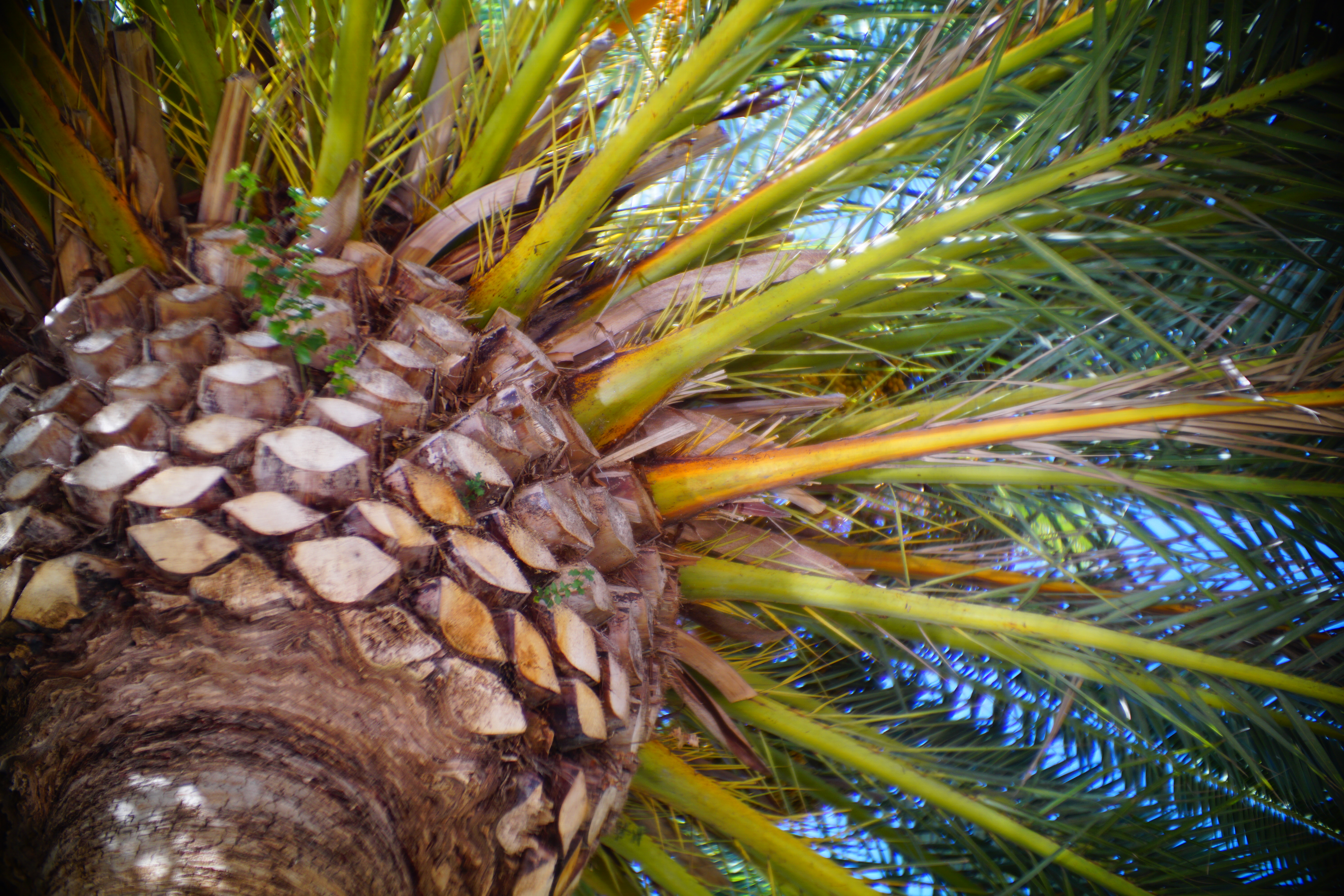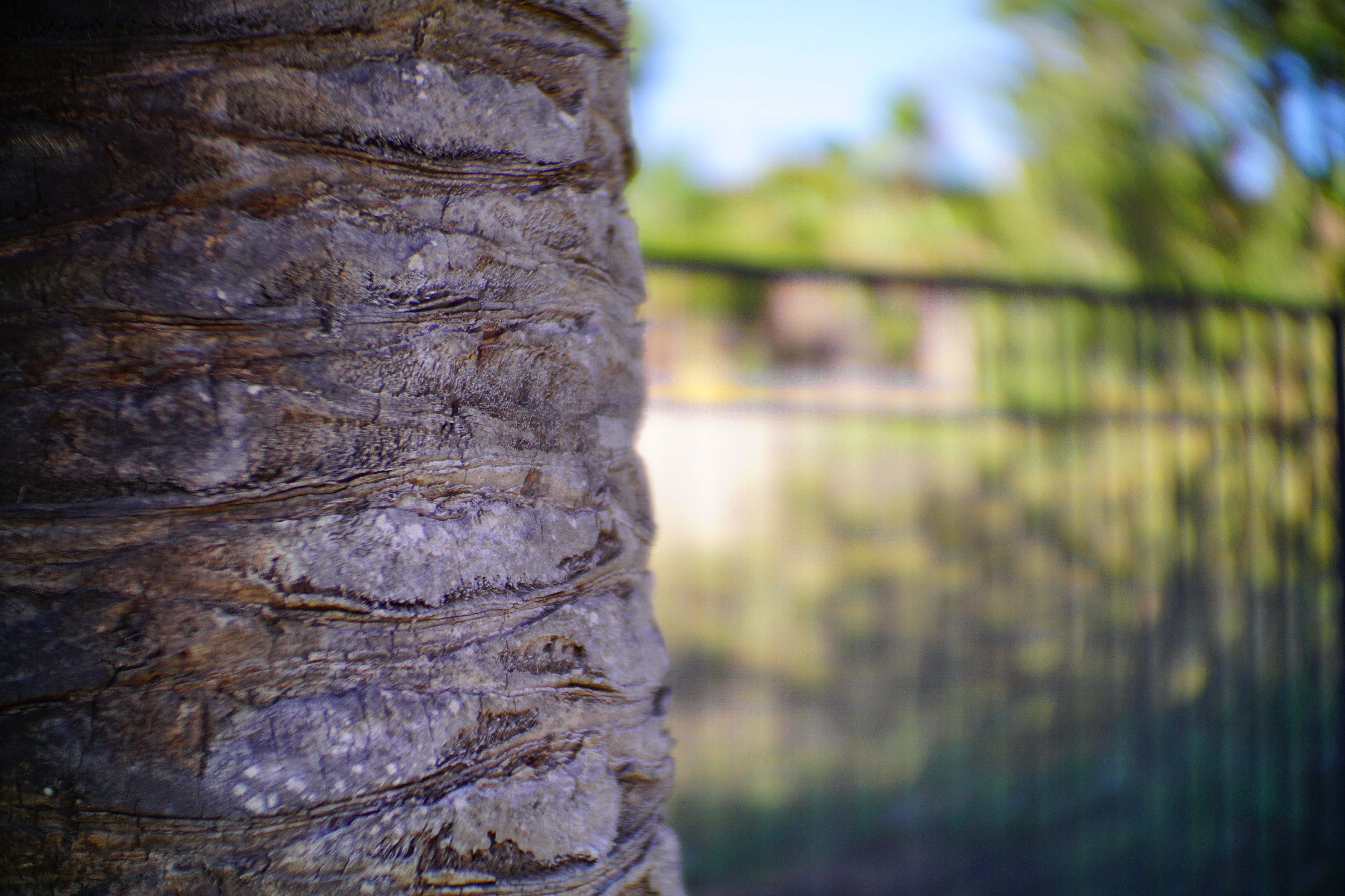 Palm trunk, 25 September 2015. Canon EF 50mm f/1.2 L, Kipon Baveyes 0.7x adapter, Sony A6000, f/1.2 at 1/3,200. bigger or camera-original © file.
