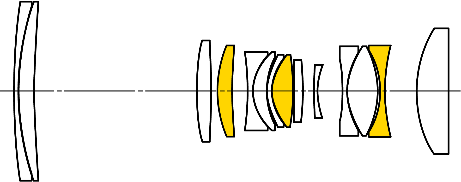 Optics specifications topInternal optical construction. ED elements. bigger. 14 elements in 10 groups. 3 ED extra-low dispersion elements, which help reduce secondary axial chromatic aberration. Multicoated.