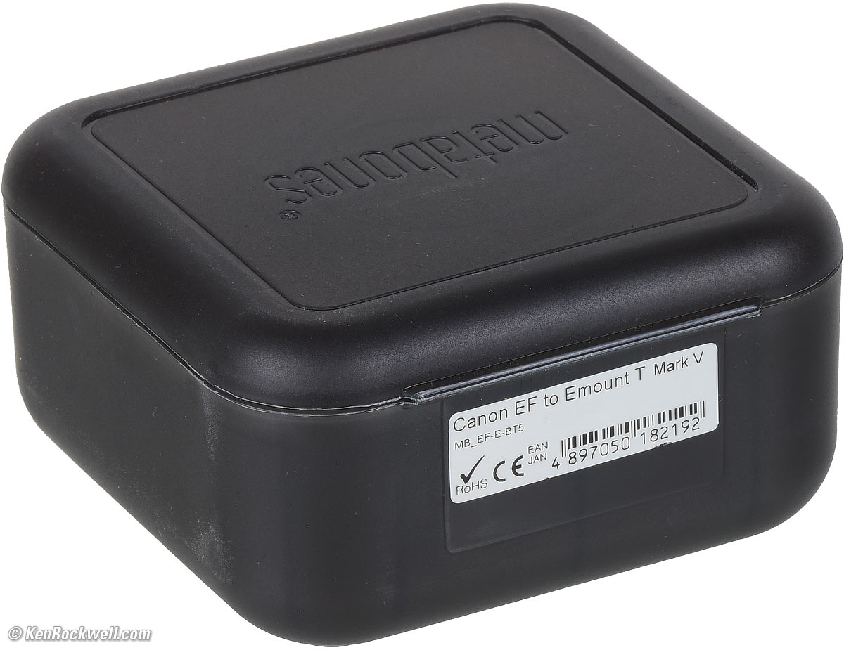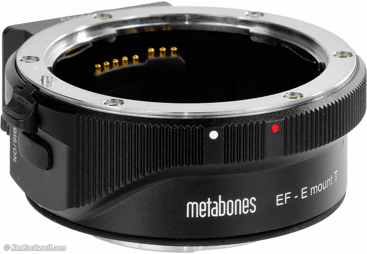 Metabones Canon EF to Sony E-Mount AdapterSmart Adapter T Mark VTop Intro Compatibility Specifications Performance Compared Recommendations Metabones Canon EF to Sony E Mount Smart Adapter T Mark V (5.0 oz./143g, about $399) bigger. I'd get mine at Adorama, at Amazon or at B&H. This all-content, junk-free website's biggest source of support is when you use those or any of these links to my personally-approved sources when you get anything, regardless of the country in which you live. Get yours only from the approved sources I use myself for the best prices, service, return policies and selection. Thanks for helping me help you! Ken.
