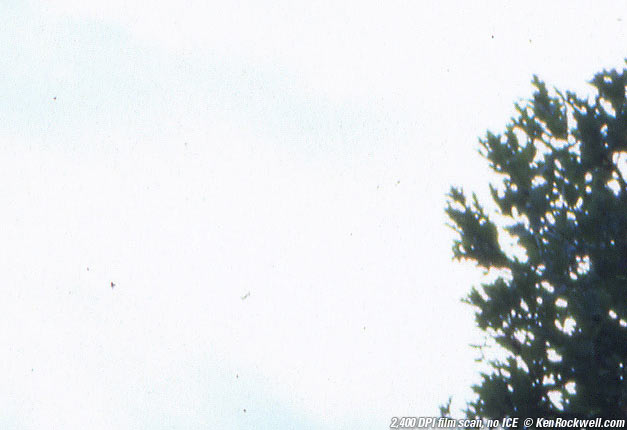 Santa Barbara Oak, 26 March 2005. This shot is too pretty to screw up with a red crop guide, so just know the 100% crops below come from the top left where the tree meets the sky. Tree shots are always tough for these filters because they can't tell the difference between a sharp branch and a speck. This is from 2400 DPI scan made on the EPSON 4990, which has 6x12 cm holders perfect for this kind of film.