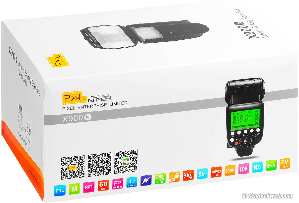 Price, USA$120 for Canon and $120 for Nikon, March 2019. Box, Pixel X900 flash. bigger.