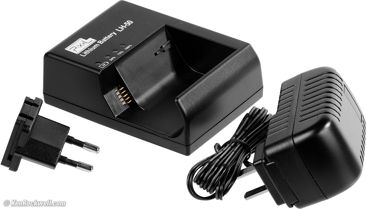 ChargerIncluded charger and adapters. bigger. Included charger includes adapters for worldwide use. Great red and green LED display shows if it's charging or not and the current charge percentage.