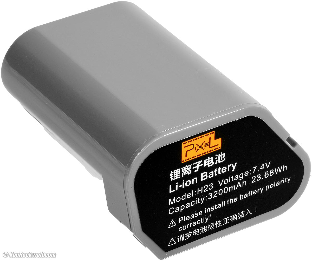 BatteryIncluded H23 battery. bigger. Included. Rated 700 full-power shots per charge.