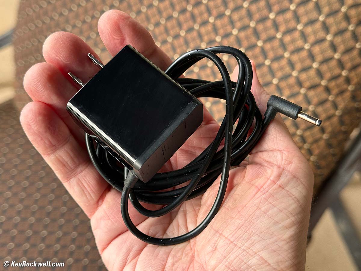 Specifications topPower AdapterIt does not plug into USB-C; you run it from AC with the included dedicated adapter. Lose the adapter and you're out of luck until you find another. It's a universal 100-240V 50-60 Hz to 9V DC 2.7A (24W) power adapter with a dedicated coaxial center-positive DC plug. My plug's outside diameter measures 3.45mm with my digital caliper: Included 9V DC Adapter (in the rain). bigger. USB-C PowerI haven't tried one, but this adapter cord may let it work great from an USB-C PD source, providing the same 9V 27 W 3A service from the included 3.5mm adapter.