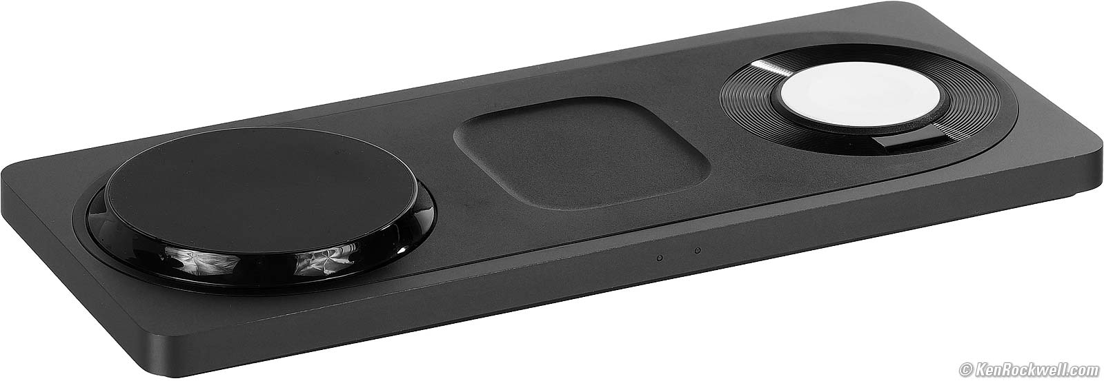 AirPods, iPhones & Almost Anything (Center) topI don't use AirPods or earbuds like the Tozo Golden X1, but I do use the all-purpose wireless charging depression in the center to charge these or my BMW Display Key as needed once a month. It's rated to charge anything wireless ever since the first wirelessly-charging iPhone 8. There's another deliberately dim white LED on the front that glows softly in the dark to let you know this spot is charging (or not). The light blinks if there's a problem.
