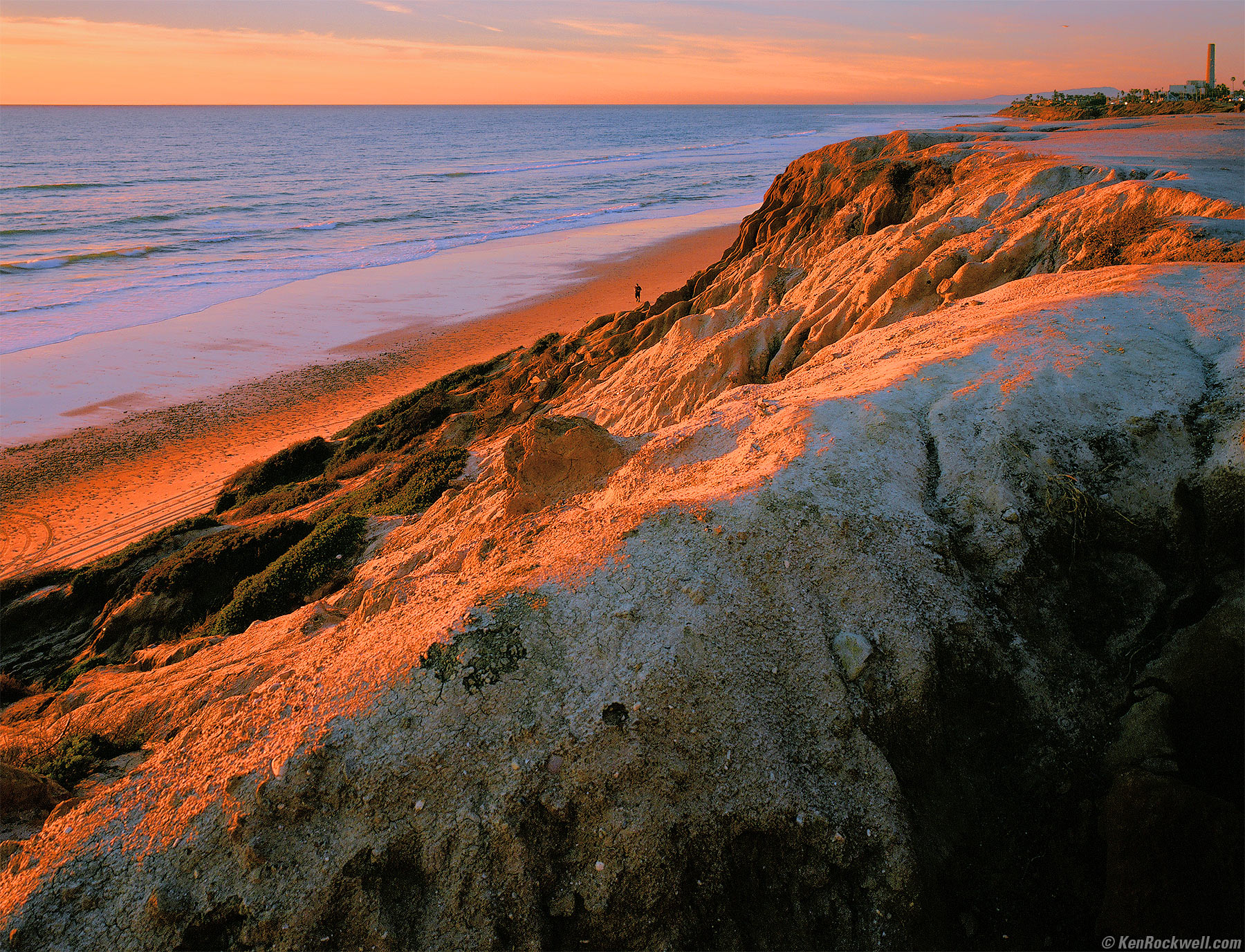 Sunset at the beach with eroded cliffs, 5PM, 26 January 2016. 1989 HASSELBLAD 903 SWC, B+W B60 CR1,5 filter, focus set to 15 feet, f/8 at 1/15 on original Fuji Velvia (not Velvia 50; this is original Velvia frozen when new and expired 2006-09). NCPS process and scan. bigger. It's got plenty of depth-of-field for hand-holding at reasonable apertures, and it's easy to hand-hold at slow speeds like 1/15. The real reason you'll want to use a tripod is for precise leveling and composition. IntroductionTop Sample Images Intro History Specifications Performance Compared