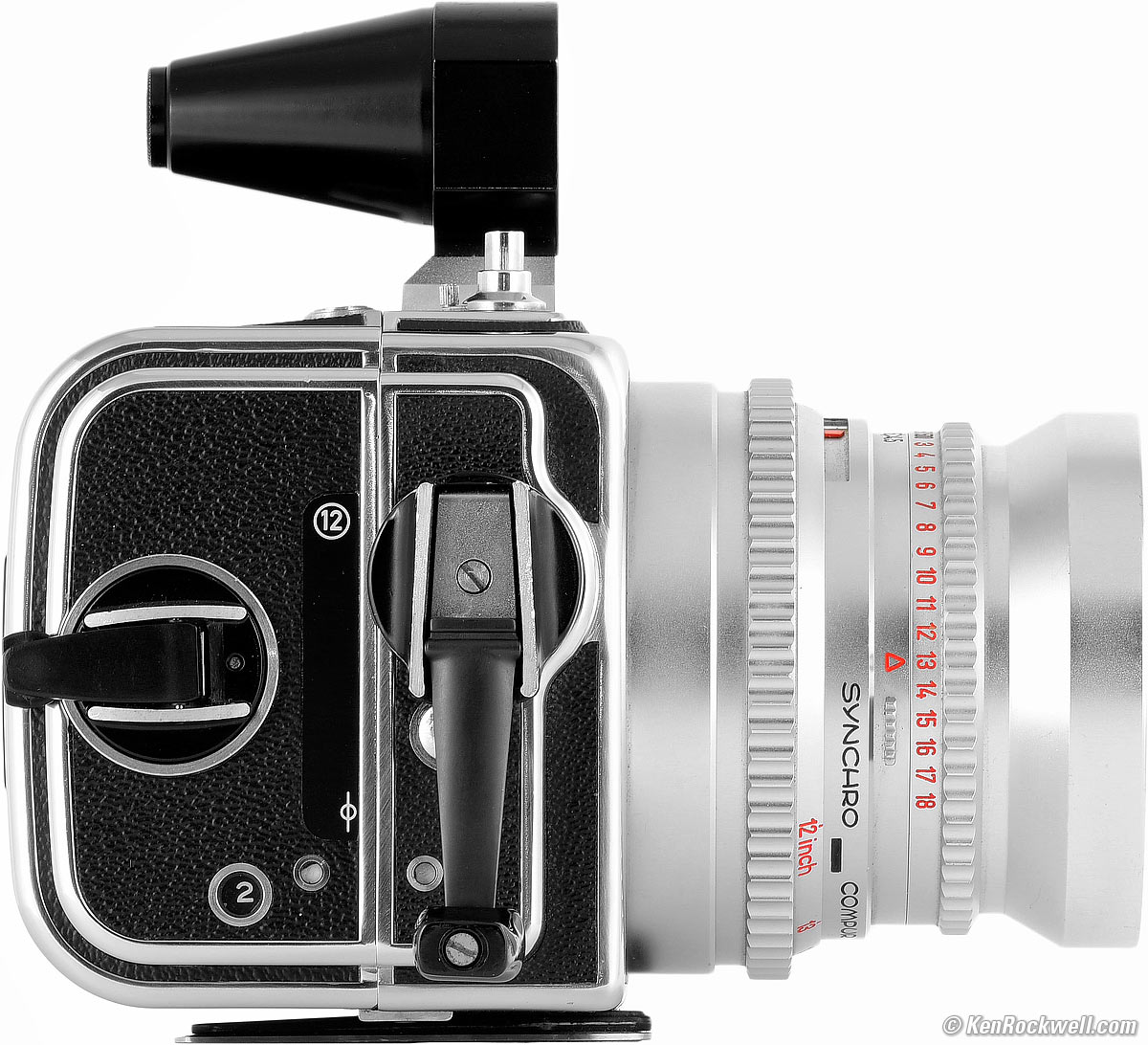 HistoryTop Sample Images Intro History Specifications Performance Compared It's been the same camera and the same lens ever since 1954 with only minor changes. While HASSELBLAD had to do something to keep people buying this same camera for sixty years and therefore trumpeted each of these minor innovations as if they were gifts from God, as you'll read they are only minor. In each case everything about the camera is unchanged except for the minor improvements as noted. The only significant changes have been automatically cocking the shutter with the film advance as of 1959, T✻ multicoating in 1973, adding Polaroid back compatibility in 1980, changing from Series 8 to B60 filters in 1982, moving the bubble level from the body into the finder in 1986, and dumbing-down the optical design with unleaded glass in 2001.