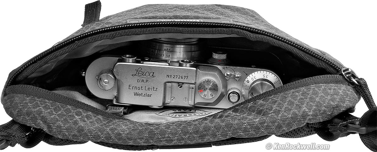 Inside is perfect for a small camera like a LEICA: Think Tank 20th Anniversary Sling Bag mit LEICA IIIa. bigger.
