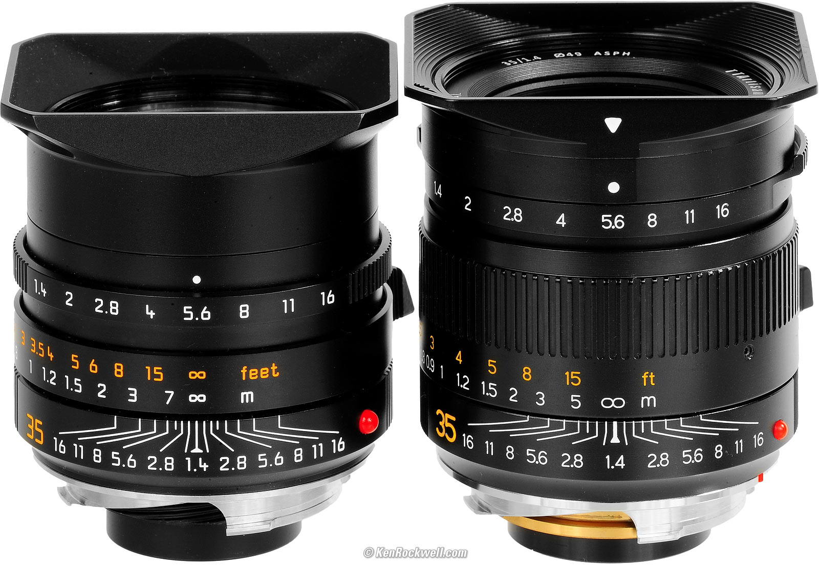I've been making comparisons to the LEICA SUMMMILUX-M 35mm f/1.4 ASPH FLE throughout this review. Here they are together; the LEICA is a little shorter but the TTArtisan uses its extra length to add a ribbed focus ring better for precise focus while on a tripod: